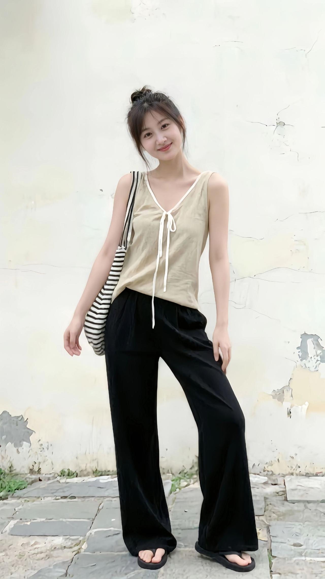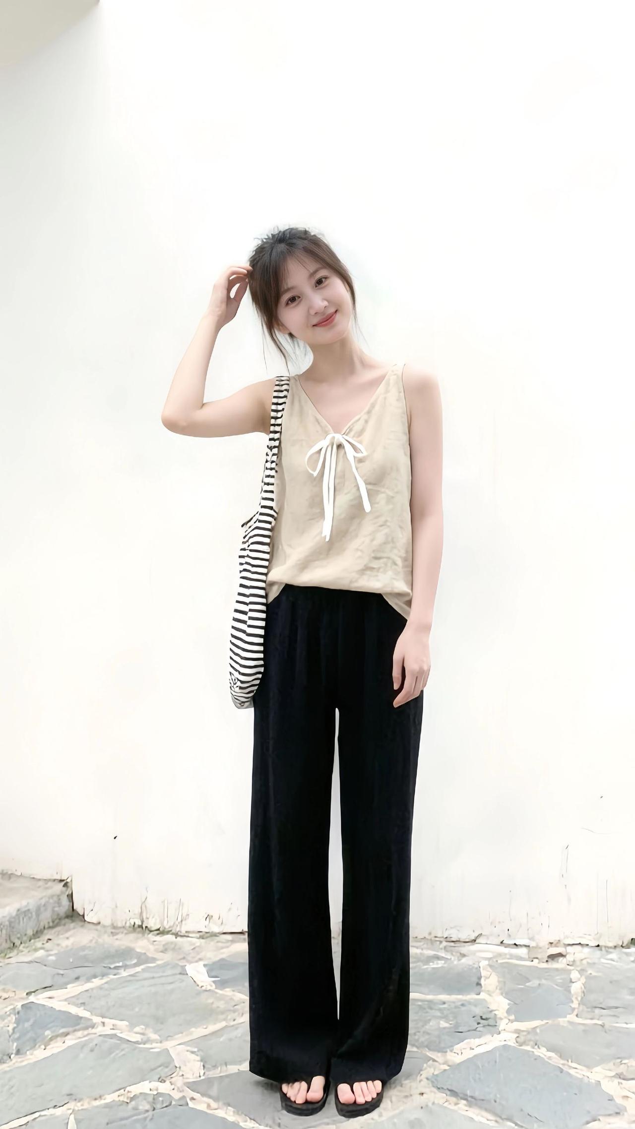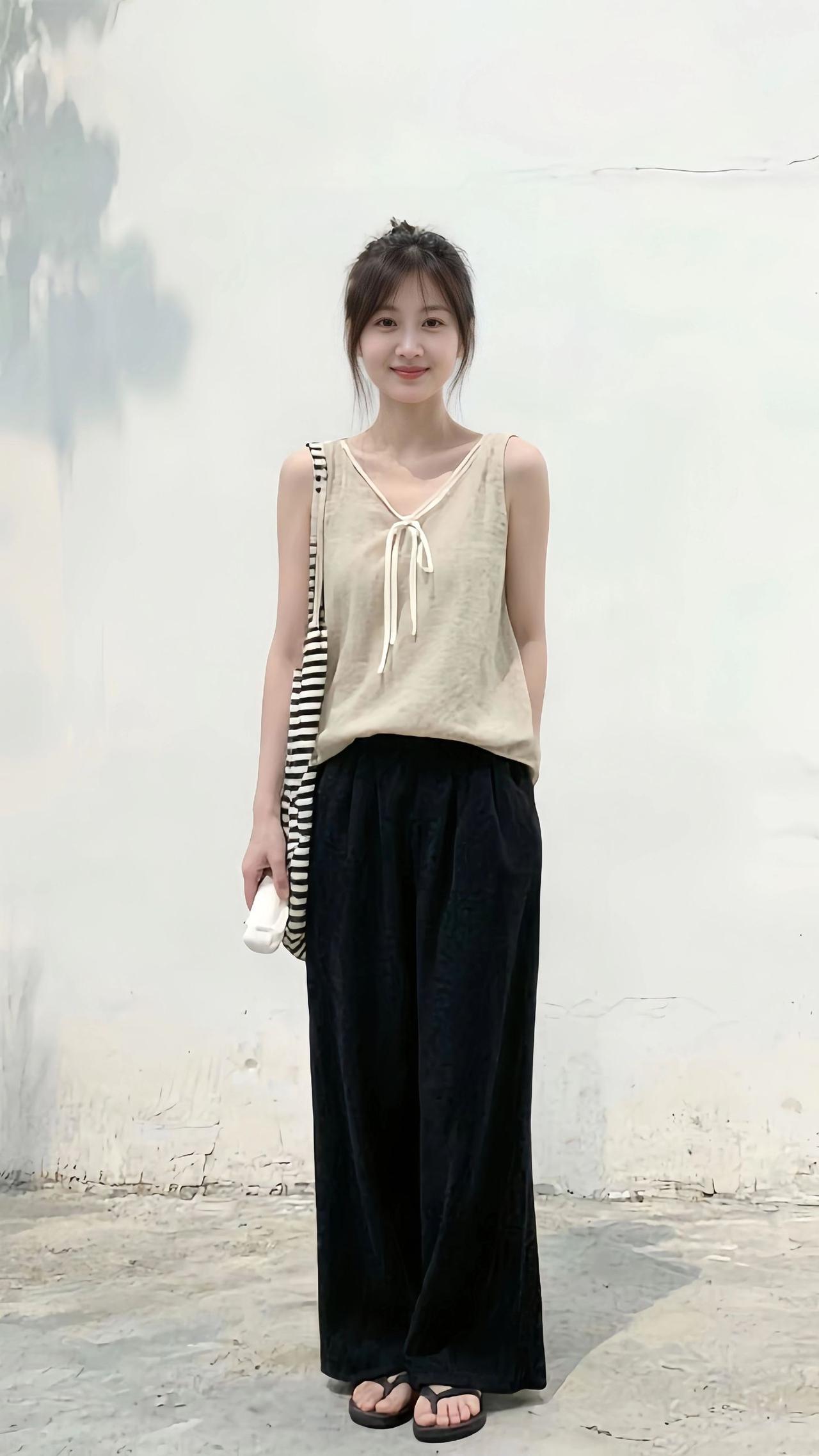 夏日穿搭指南:简约无袖上衣+宽松阔腿裤,轻松自在!