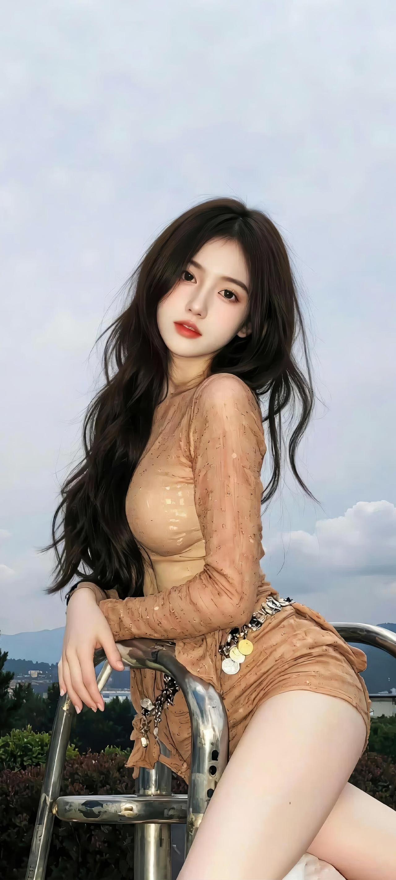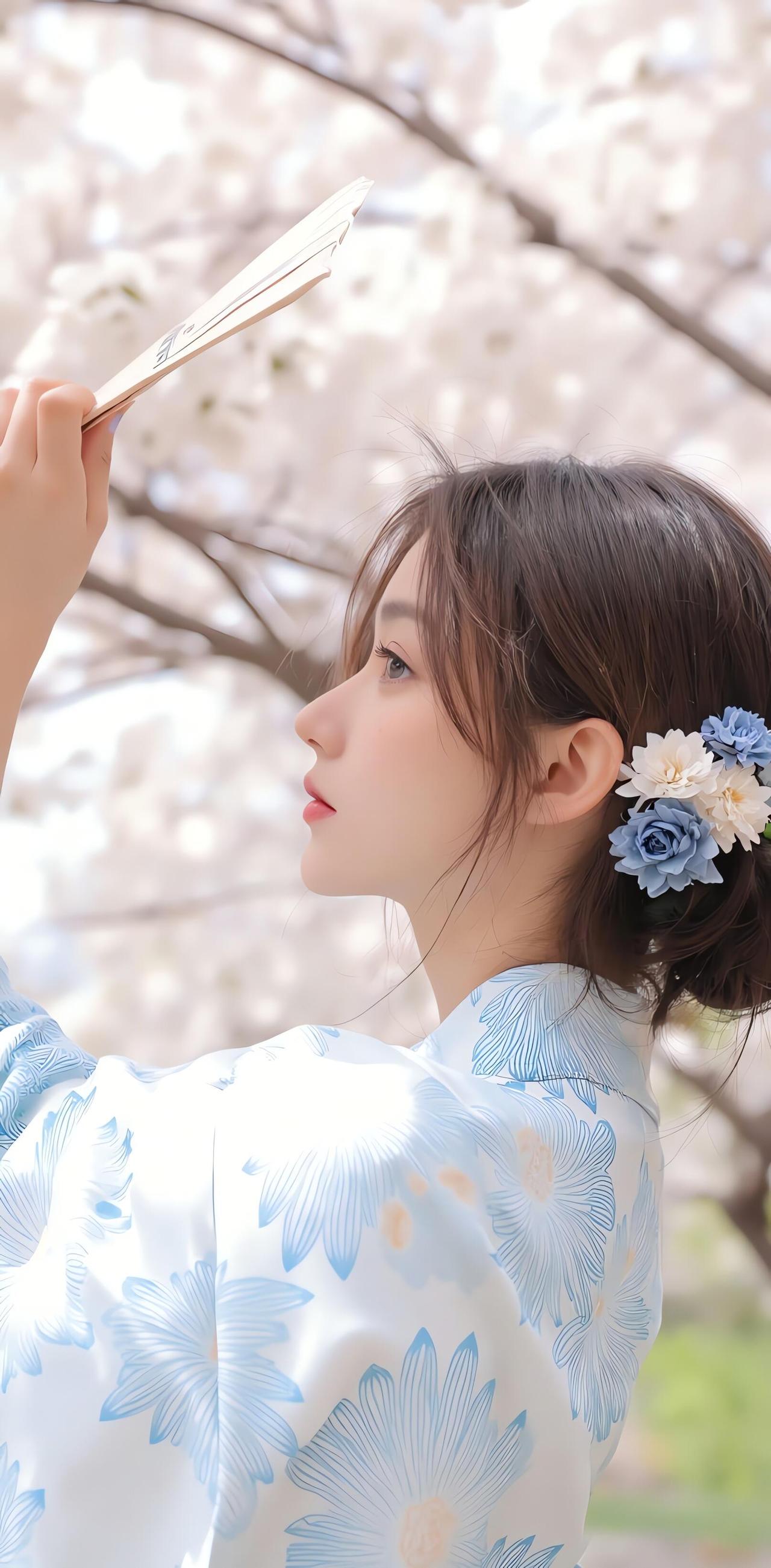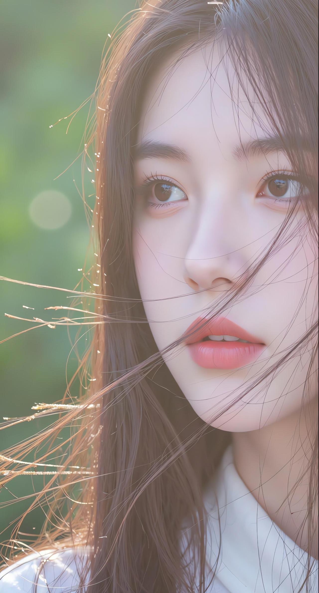 复古风少女,白色蕾丝裙,坐在木质长椅上,背景是花纹墙纸,散发着优雅与宁静的气息。