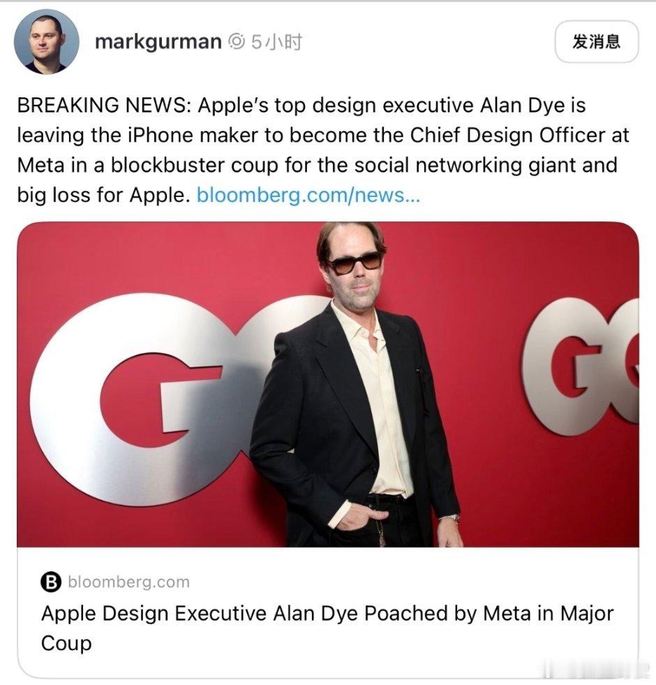 苹果顶级设计师投奔Meta果粉:我的UI谁来守护…苹果顶流设计主管Alan Dye官宣离职,转头就去Meta当首席设计官了!这可是iPhone人机界面的灵魂人物,日常用的那些经典设计都出自他手,苹果这次史诗人才流失真的太伤了Meta倒是赚翻...