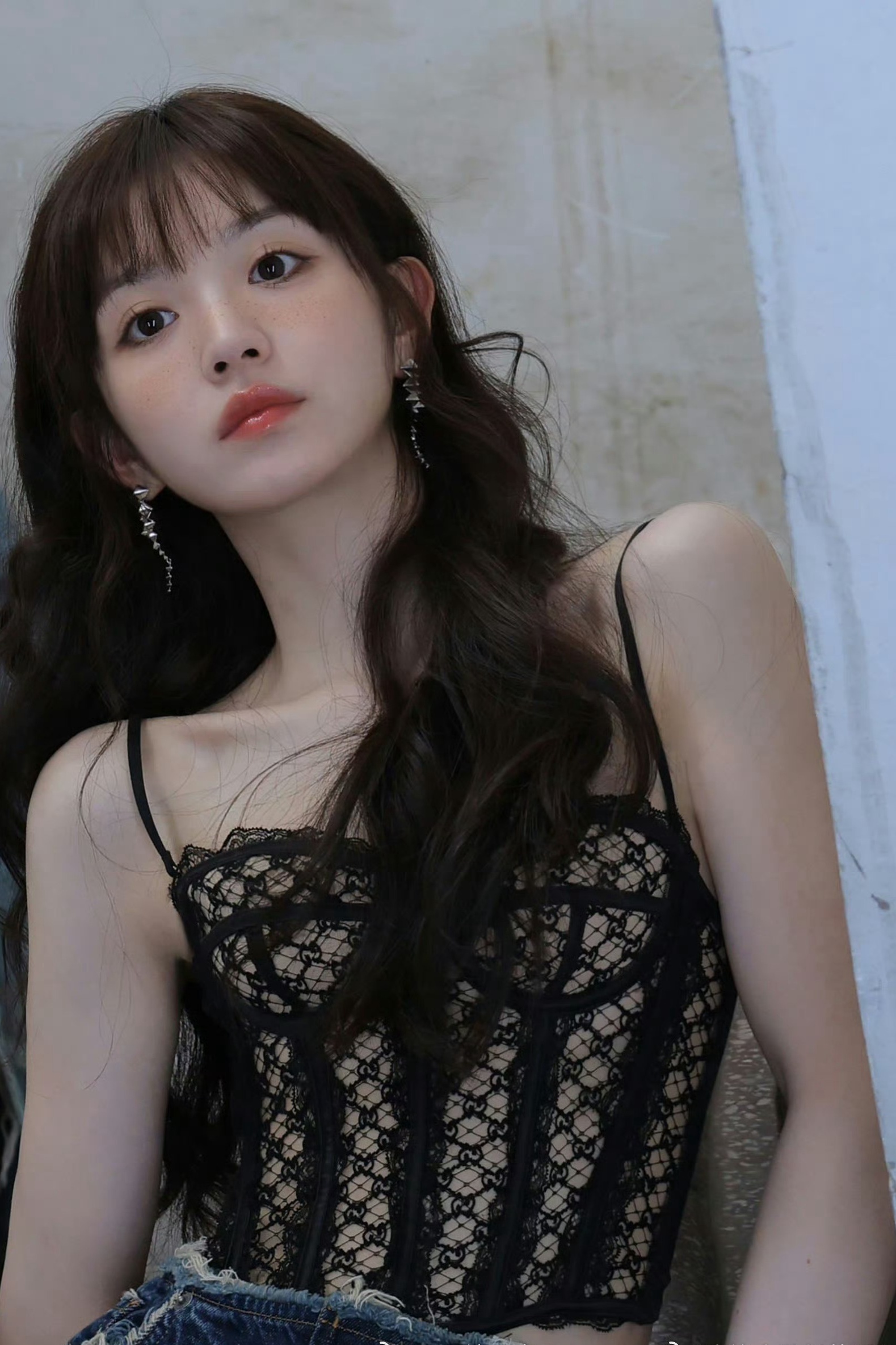 田曦薇头像:蕾丝吊带裙好甜美。田曦薇