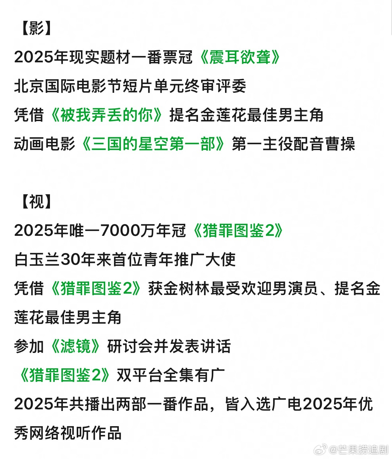 檀健次的2025年可以用圆满概括了,全方面地事业飞升:【影】一番票冠【视】一番年冠【歌】巅峰双奖【舞】世界大奖赛【时尚】9奢+3本五大