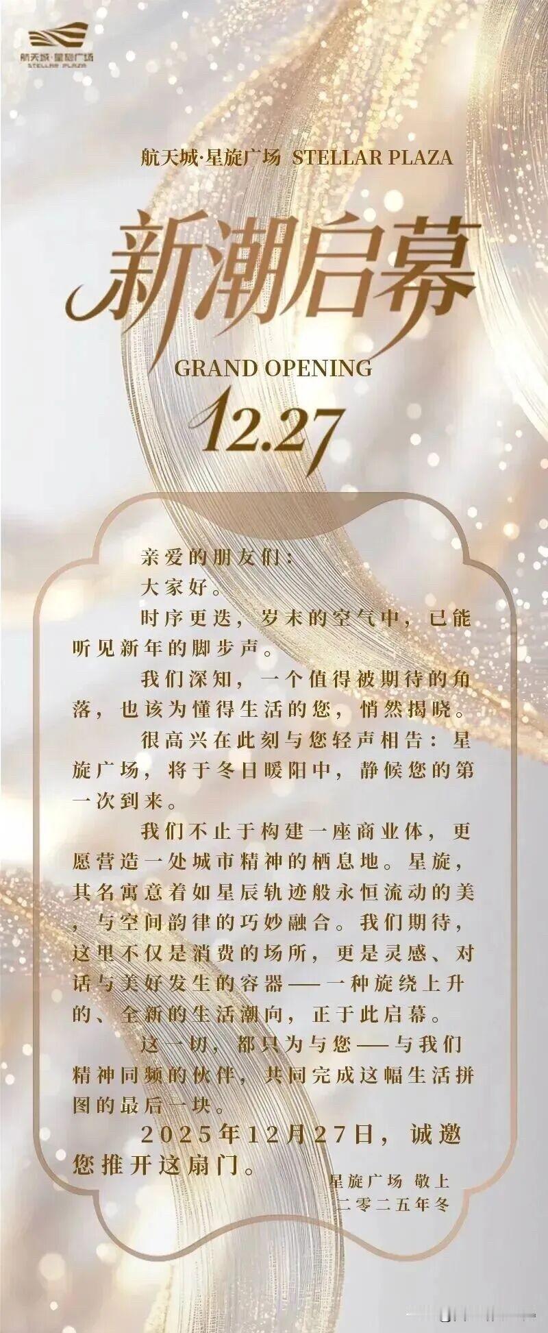 航天新城苦等5年!12万方“体育+商业”综合体12月27日开业 被戏称“商业荒漠”的航天新城,终于要迎来首个大型综合体了!星旋广场官宣12月27日正式开业,就在航新路与神舟四路交汇处,地铁4号线神舟大道站可达,周边30万居民盼疯了! 这项目可不一般,12.2万方体量分两大块:7.9万方商业中心里,成山农场、星巴克、华为等牌子都已入驻,还有多家航天首店、城南首进品牌,从LG2到L4+1每层都有主题,逛吃遛娃全搞定。更亮眼的是4.3万方体育Mall,能办赛事、做健身,还有青藤篮球、2000平健身会所,运动达人在家门口就能打卡专业场地。 历经5年建设、多次延期,现在终于要开了!现场外立面早完工,不少店铺在做开业前清洁,部分品牌已放出优惠,月底开业稳了。以后航天人不用再跑高新、曲江,下班就能约饭逛街,周末带娃运动购物一站式解决。这波必须冲,准备好逛新地标了吗?