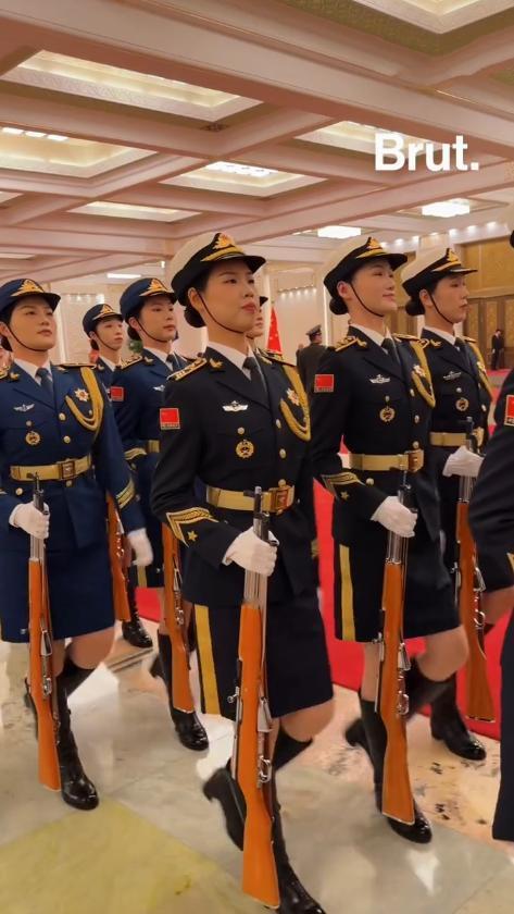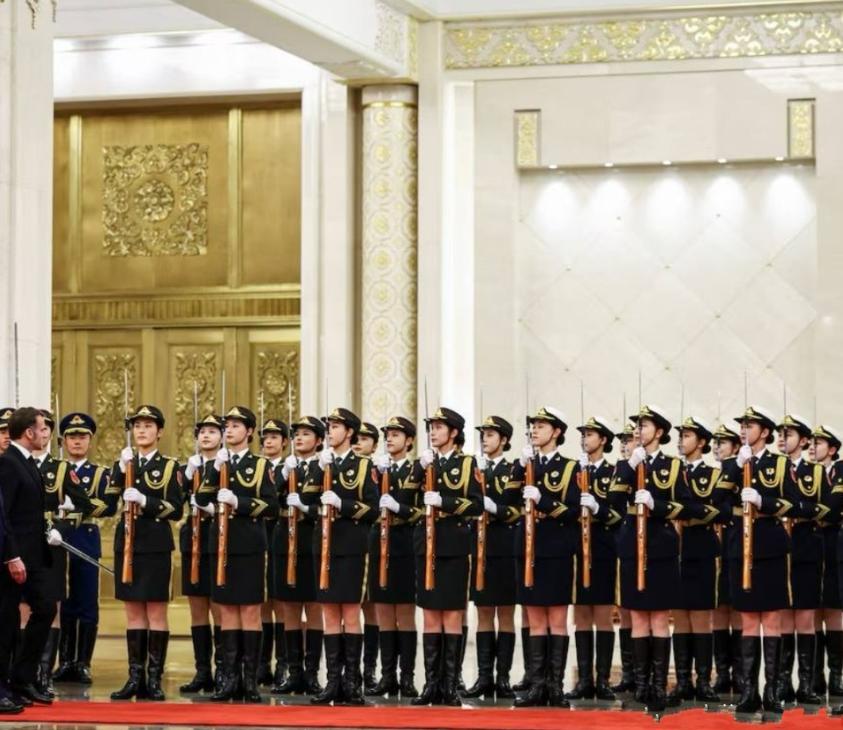 12月4日马克龙在人民大会堂检阅仪仗队,女兵仪仗队个个长得眉目清秀,个头与身材不输超模!当总统先生走仪仗队前走过,这些女兵仪表仪容没得说,还都化着精致妆容,穿着统一的军装,真的是又美又飒! 法新社镜头下的女兵,站姿笔挺气质卓绝,表现力丝毫不输给男兵仪仗队,关键是女兵颜值也高,总统先生看着也赏心悦目。 不过马克龙可不是来看美女,因为法国媒体说他访华旨在说服北京加大对法国的投资,并分享其先进技术,所以总统先生是带着任务到北京,就看他怎么谈合作了。