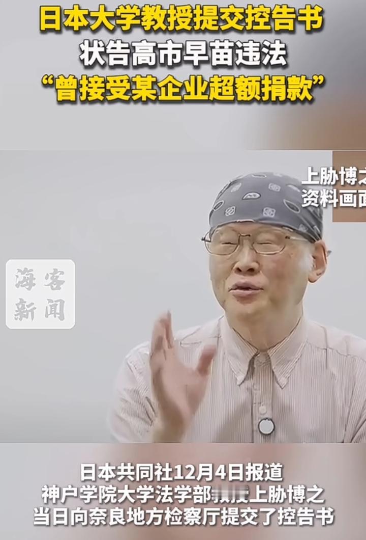 后院起火 日本神户大学法学部教授上胁博之在12月3日对高市早苗发起一份控告书,目