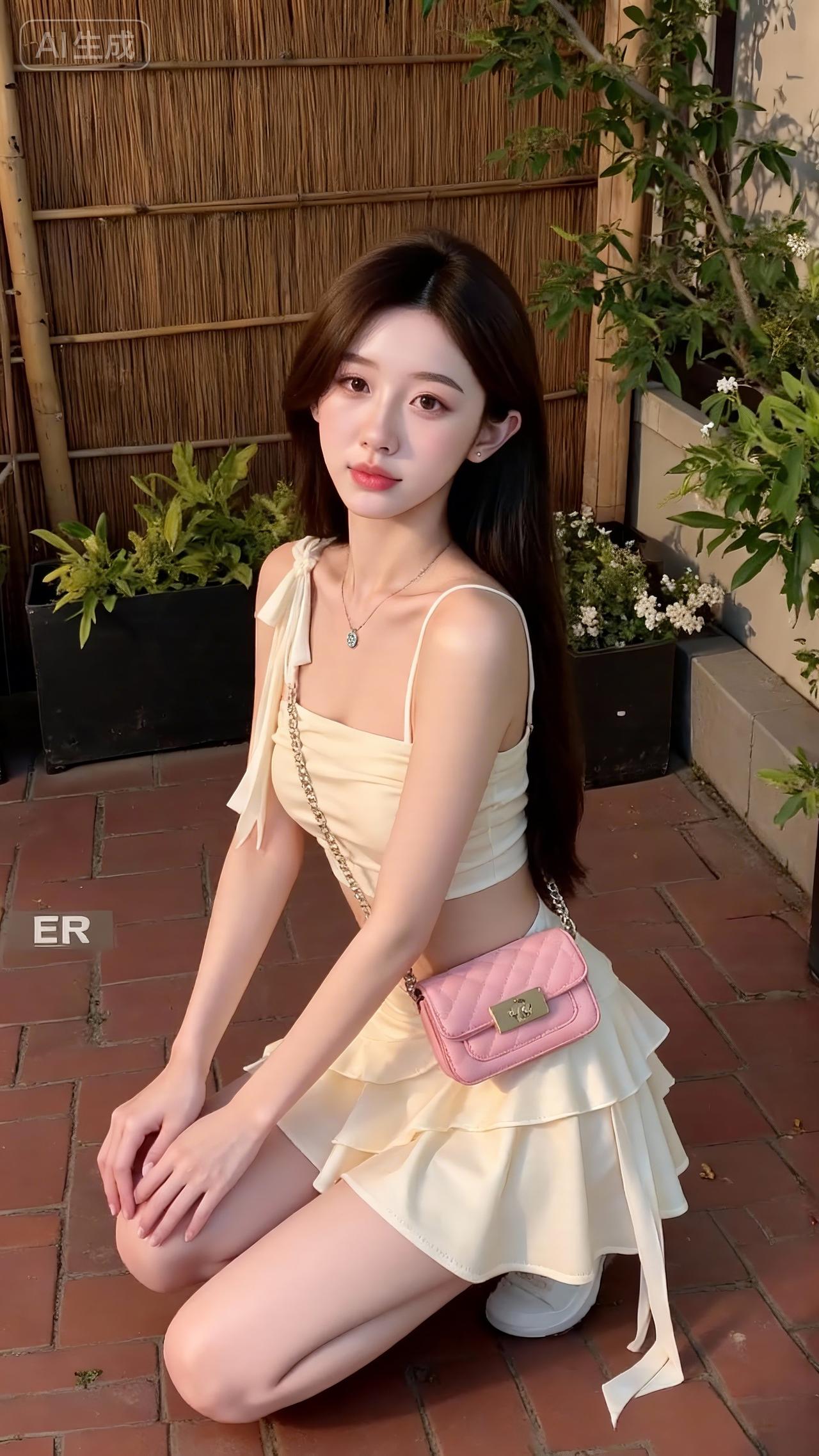 奶黄绑带套装,甜欲少女奶黄斜肩上衣 流沙奶黄包 奶黄卫衣