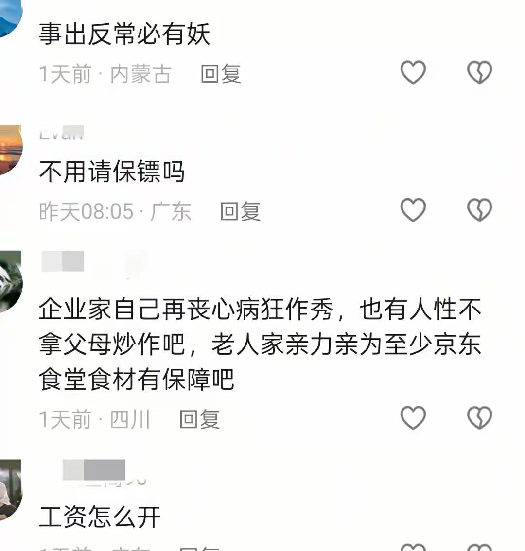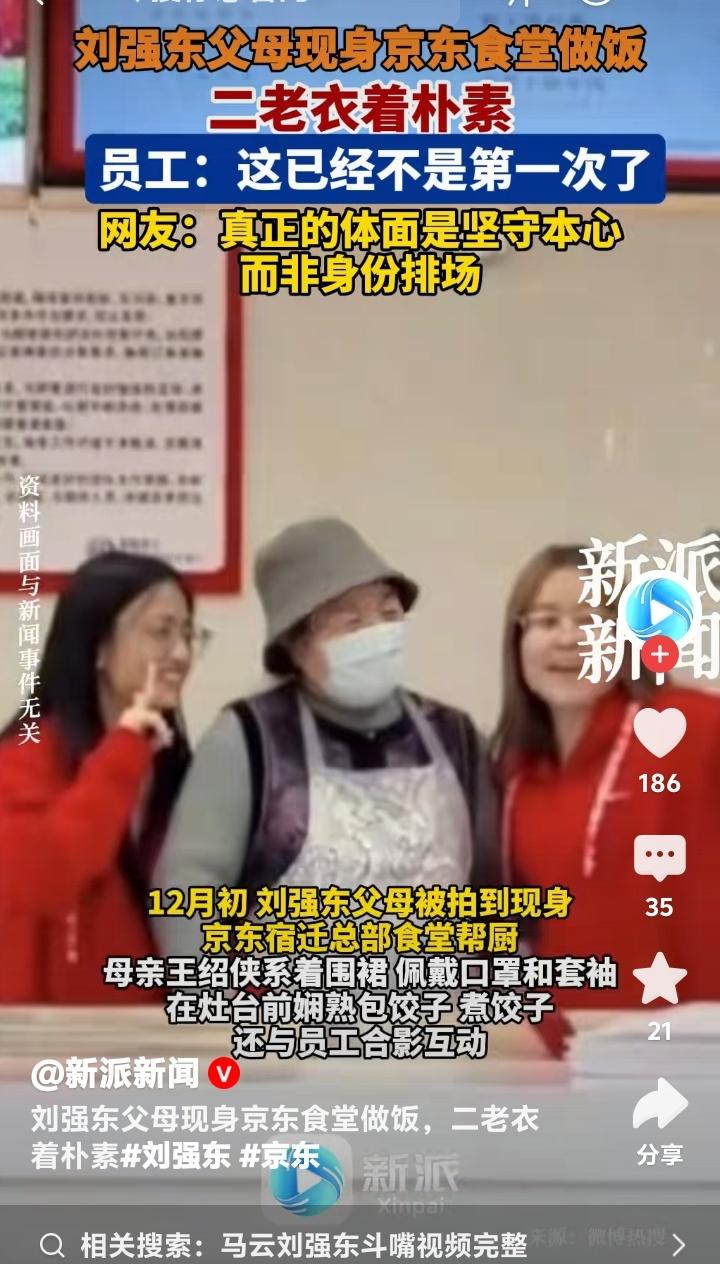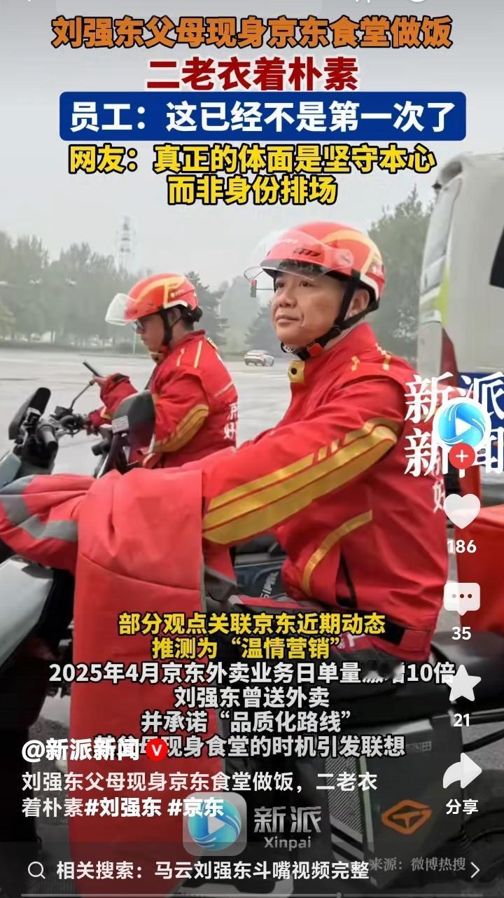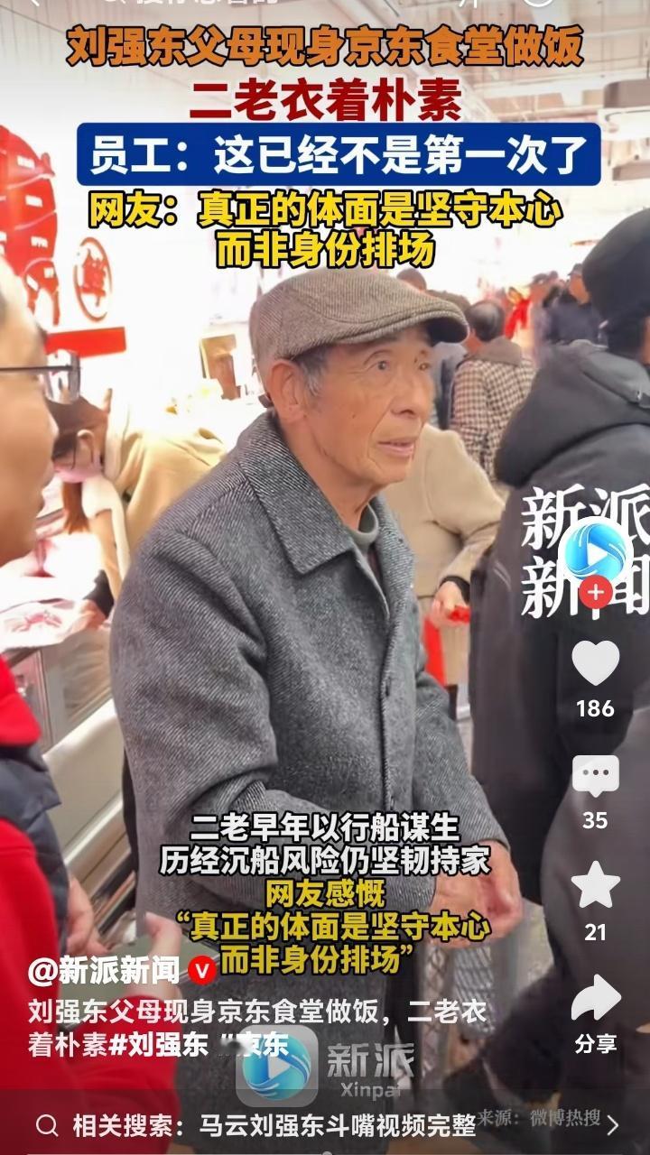 刘强东父母京东食堂打工16小时真相曝光:冻红双手背后,藏着中国式父母最戳心的爱! 近日,一组京东食堂的偷拍照刷爆网络。照片里,刘强东的母亲王绍侠双手冻得通红,正麻利地收拾着食材;父亲刘志成则坐在小马扎上,一根根仔细摘着韭菜。谁能想到,这对衣着朴素、干活认真的老人,竟是京东创始人刘强东的亲生父母。 他们从清晨六点忙到晚上九点,一天工作长达十六个小时。这画面瞬间击中了无数网友的心。儿子身家千亿,父母为何还要在食堂辛苦劳作?是作秀,还是另有隐情?随着细节层层剥开,一个关于中国式父母深沉之爱的故事,缓缓浮现。 在讲究排场和身份的今天,这对老人选择了最朴素的方式存在。碎花上衣、棉毛鞋、旧围裙,全身上下可能不超过两百块。他们穿梭在食堂后厨,包饺子、摘菜、洗刷,和普通员工毫无区别。这份“普通”,在富豪光环的映衬下,显得格外刺眼,也格外真实。 有京东员工透露,刘妈妈包的饺子馅大皮薄,深受欢迎。她甚至能记住常来员工的喜好。这哪里是在打工?分明是把对儿子的爱,化作了对儿子企业里每一个孩子的关怀。那一双双冻红的手,捧出的不是食材,是为人父母滚烫的心。 我们总以为,给父母最好的回报是让他们享清福。可对于劳碌了一辈子的他们来说,“闲下来”可能意味着失去价值感和与世界的连接。在城里,他们听不懂时髦话题,融不进老年圈子。食堂的灶台和蔬菜,反而成了他们最熟悉、最能安放自己的天地。 这不禁让人反思,我们所以为的“孝顺”,是否只是我们单方面的自我感动?真正的孝顺,或许不是强行将他们供养在精致的笼子里,而是尊重他们的生活方式,守护他们那份“有用”的尊严。刘强东默许父母在食堂忙碌,何尝不是一种更深的理解? 从刘强东送外卖,到其父母下食堂,京东的“亲民”叙事似乎一脉相承。但比起商业策略,我们更愿意相信这是刻在一家人骨子里的本色。他们从苏北农村的苦难中撑船而来,即便财富滔天,那份对劳作的信奉、对土地的眷恋、对朴素生活的坚守,从未改变。 网友们一边心疼那双冻红的手,一边又被深深触动。这背后,是亿万普通家庭的情感共鸣。我们的父母何尝不是这样?永远闲不住,永远在为儿女操心,永远在用自己的方式,笨拙而全力地爱着。他们爱的不是那份工作,而是通过工作,与你世界产生的那一丝联系。 刘强东父母的故事,撕开了浮华世界的一角,让我们瞥见了财富之上更珍贵的东西——一种未被异化的劳动本色,一种深入骨髓的家庭羁绊,一种超越物质的中国式亲情。它无声,却震耳欲聋。下次给父母打电话时,或许我们该问问:你们今天,为自己做了些什么? (来源:根据微博、抖音、今日头条等平台热议话题及京东员工爆料内容整合) 刘强东父母 中国父母
