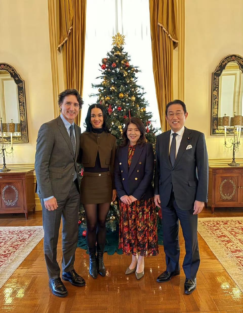 加拿大前总理特鲁多与凯蒂·佩里访问日本,岸田文雄与他们会面合影