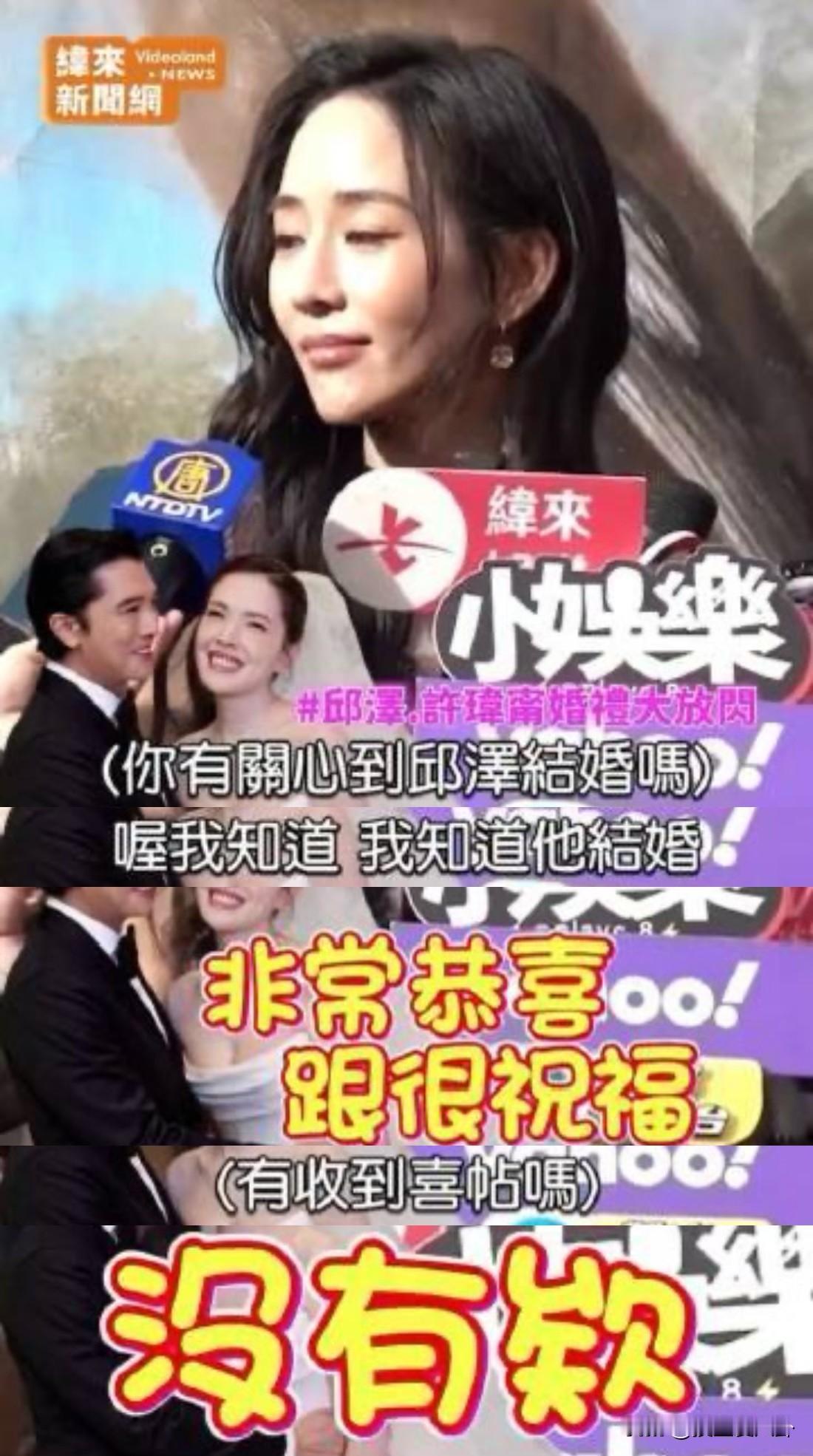 这下好了 所有人都知道了 张钧甯才是邱泽永远得不到的女人! 邱泽许玮甯婚礼都结束好几天了,竟然跑去问张钧甯,有没有收到请柬! 原来当年邱泽追求过张钧甯,到处和媒体说“努力追求中”。 但张钧甯对他完全不感冒,直接回应两个人并没有什么交集就是拍戏认识的。 就挺尴尬的。 张钧甯还和许玮甯前男友阮经天是好朋友。 就这种抓马的关系,邱泽许玮甯婚礼怎么可能邀请张钧甯,真邀请了她也不回去。 邱泽