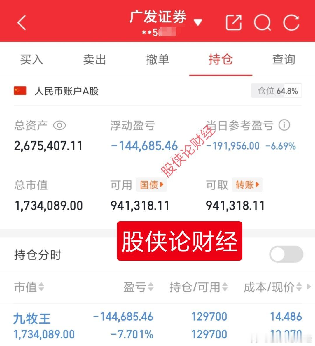 盈利一点不走尾盘又A杀?30万本金实盘记录(第127天)目前资金:2675407.11元今日持有:九牧王 sh601566[股票]我会把每天实盘记录下来,我相信实盘肯定一直往前冲,希望各位股友支持股侠!点赞富一生,评论888票票长虹!特别声明:这只是我个人的操作记录,不作为任何投资建议,更不是劝你们跟买!股市有风险,投资需谨慎!!!🙏🙏🙏股票上证指数a股炒股技巧财经知识分享官金融股票炒股