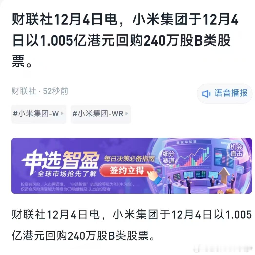 小米今天股价走势不错,本来以为没回购了,但还是回购了1亿,看样子是要跟空头干到底了,强烈支持!!!