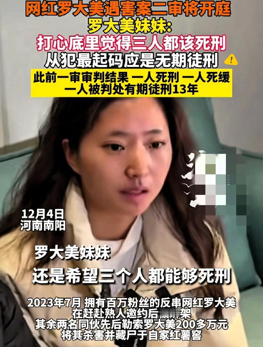 罗大美案二审明天开庭,杨恒这“从犯”的认定,真的太让人堵得慌! 你想啊,要是没有他用朋友身份把罗大美骗过去,后面的抢劫杀人根本就没法儿发生——这哪是“次要作用”?明明是整个凶案的“开门锁”。 一审给杨恒判13年,家属不服太正常了。 他嘴上说“没参与预谋”,可证据里明明白白是提前商量好的,拿500块钱就把熟人卖了,这不是引导者是啥? 法律里的“从犯”不该是这种“踩碎信任”的帮凶的保护伞。 真不是非要谁重判,而是“信任背叛”的恶,得和实际危害挂钩。 要是这次还轻判,以后熟人作案是不是都能拿“没动手”当借口?你觉得杨恒到底该算主犯还是从犯?