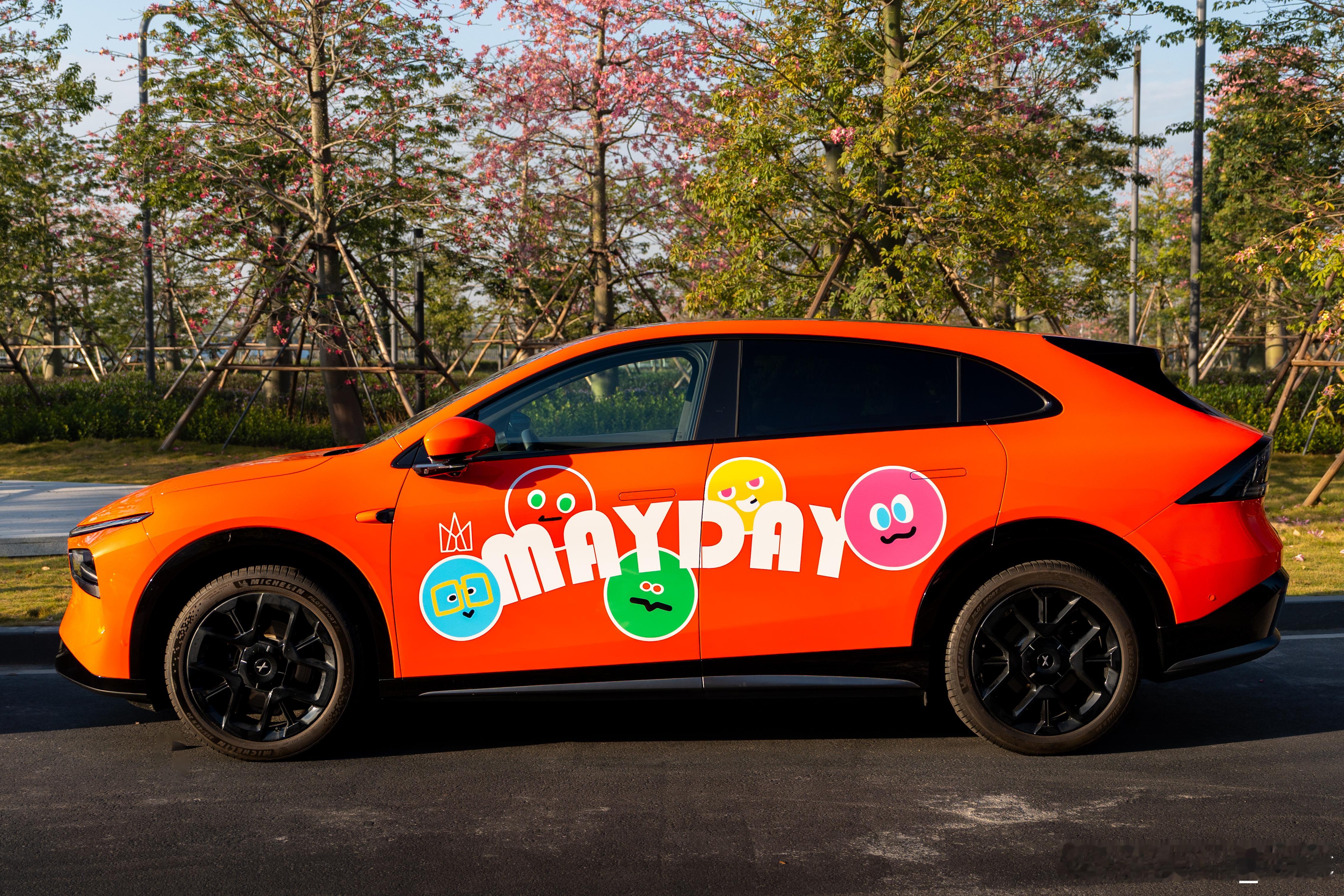 广州街头开过一串五月天 近日,有小鹏车主自发组织了五月天痛车车队齐聚广州;这些车要去前段时间开到上海长宁来福士,那挡风玻璃上一定会被五迷老师塞满物料