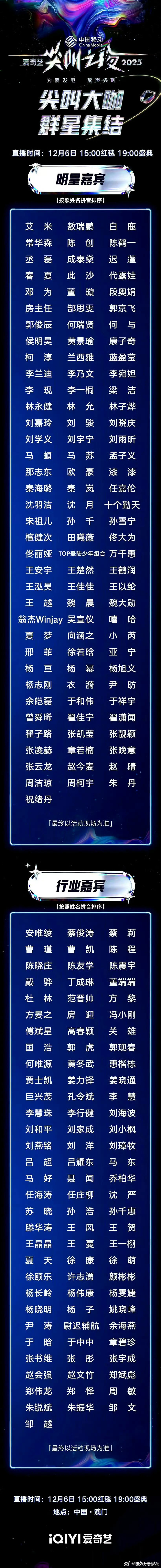 尖叫之夜全阵容…感觉今年能看邓为 檀健次 刘宇宁这几家流量灯牌战况了…还是有点悬念的压谁家多…