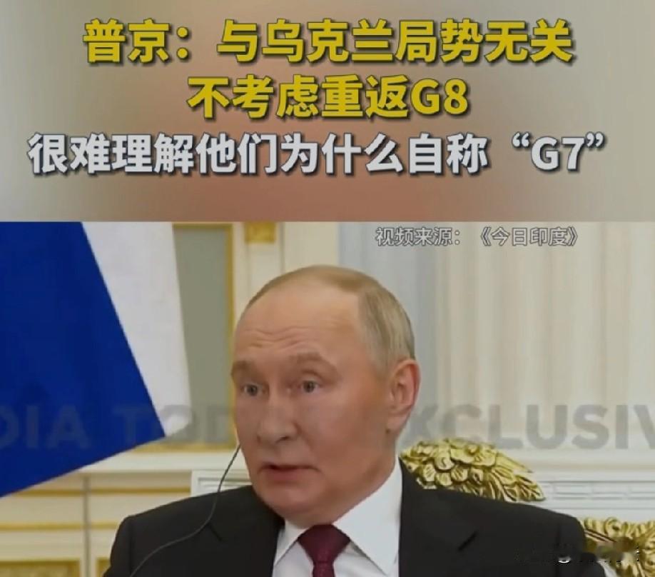普京访印前,被问俄罗斯想不想回G8,他直接一个“不”字斩钉截铁,还戳破了G7的“尴尬”——按购买力平价算,好些G7成员国的经济分量,居然还不如印度! 要知道G7原本是西方主导的“精英俱乐部”,早年拉俄加入成了G8,2014年又把俄踢出去变回G7。现在普京明着说“搞不懂他们为啥还叫G7”,潜台词就是:现在的国际格局早变了,不是你们几国说了算! 虽然他也承认G7仍是重要平台,但这份表态太提气——毕竟现在全球话语权早该向新兴经济体倾斜了,老圈子该更新玩法啦! 而且普京说得特实在,没把话说死,还祝G7一切顺利,既守住了俄罗斯的立场,又留了分寸感。不得不说,大国领导人说话就是有水平,既点透了现实,又不搞对立,这水平绝了!