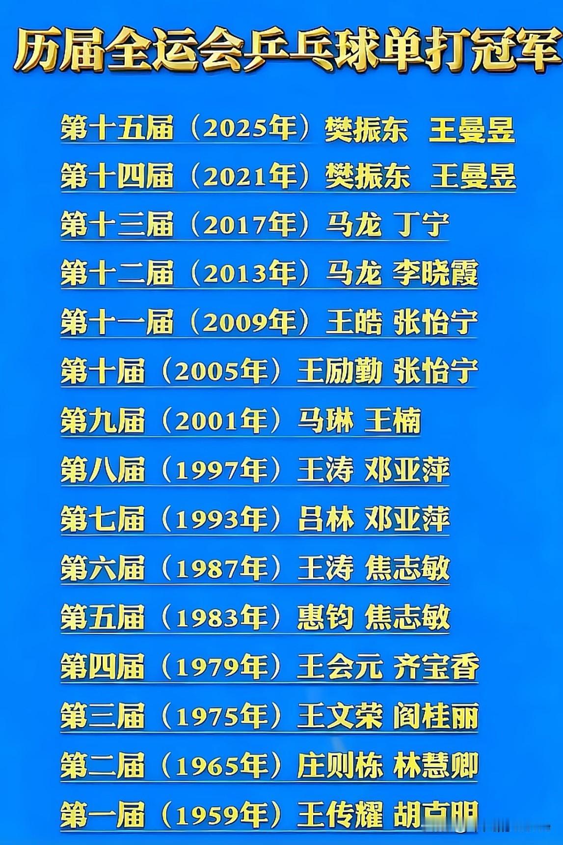 大家知道哪些运动员夺得过两届全运会乒乓球项目单打冠军吗? 在举办的15届全运会中,只有6人蝉联过两次单打冠军,他们是樊振东、王曼昱、马龙、张怡宁、邓亚萍和焦志敏。 6位运动员中,只有焦志敏不认识,大家认识她吗?