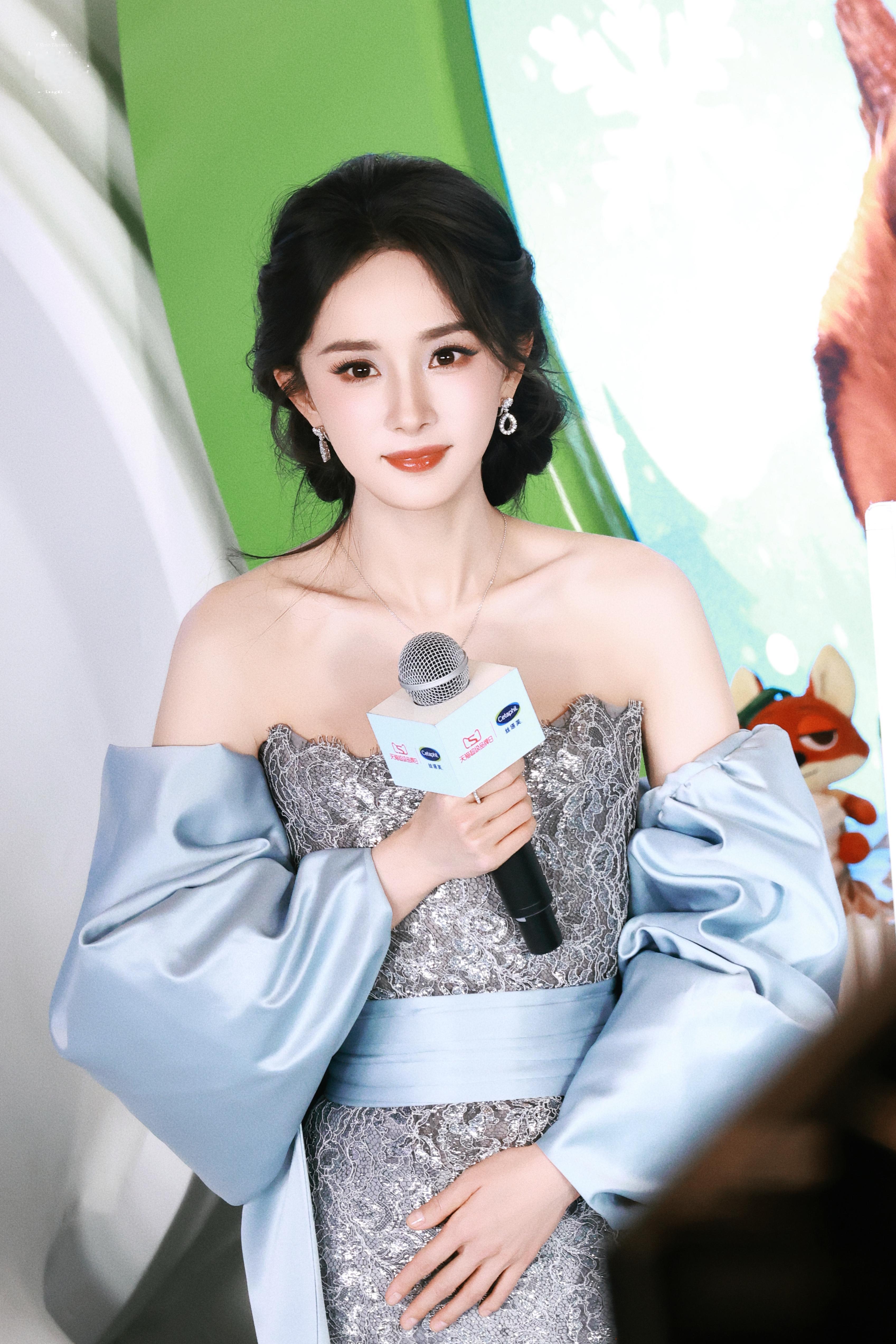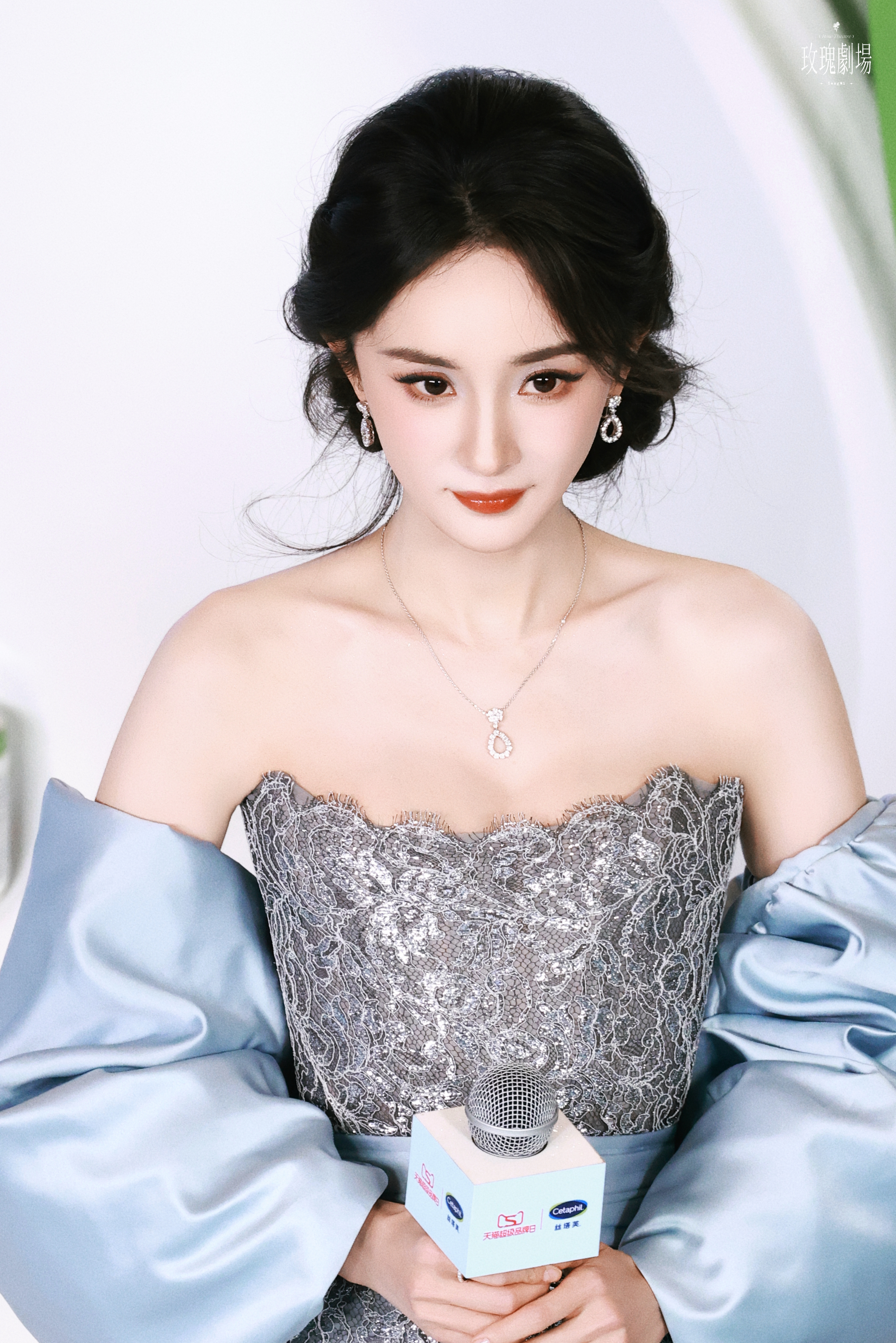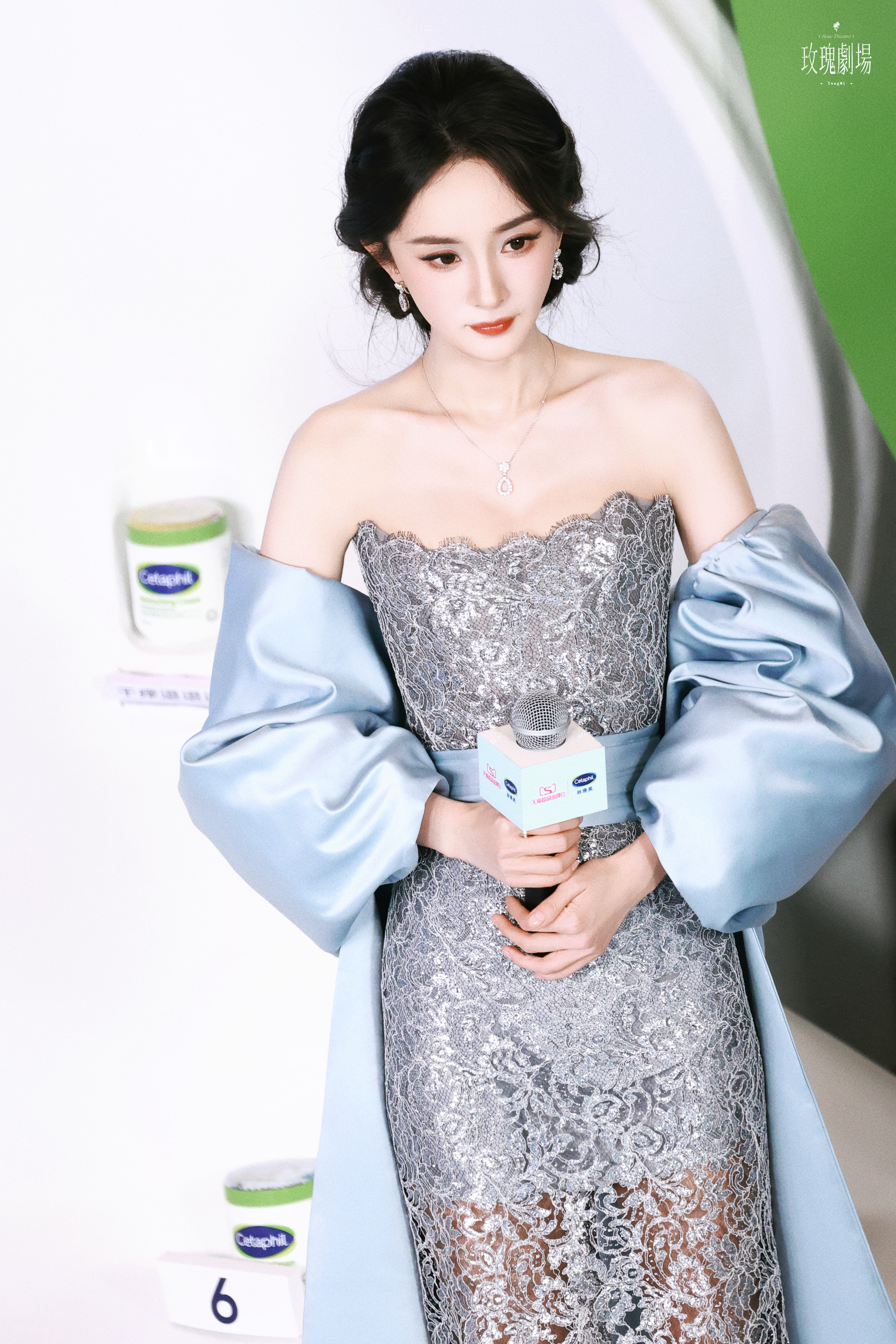 演员杨幂今日出席丝塔芙品牌线下活动,身着AADNEVIK 2026春夏系列抹胸礼服,佩戴CHOPARD萧邦珠宝,完美驾驭蕾丝透视和优雅缎面拖尾的混搭,超美的代言人,不愧是幂神喔~杨幂蓝色镂空裙|杨幂蓝裙低盘发造型