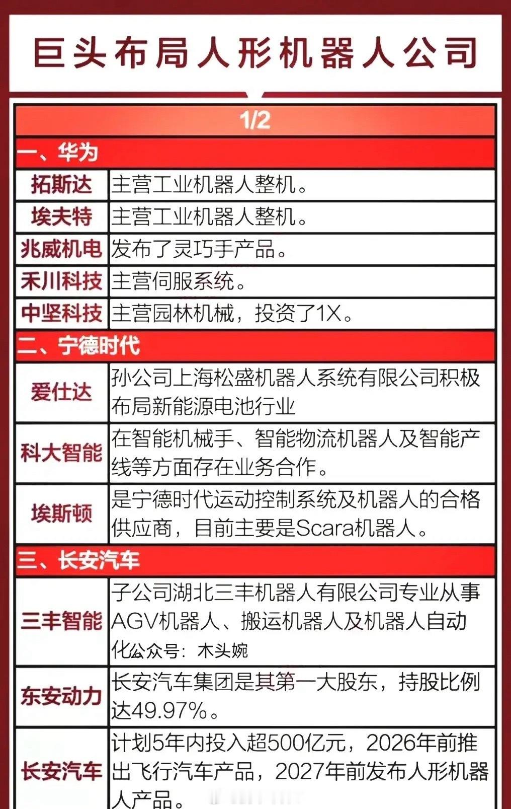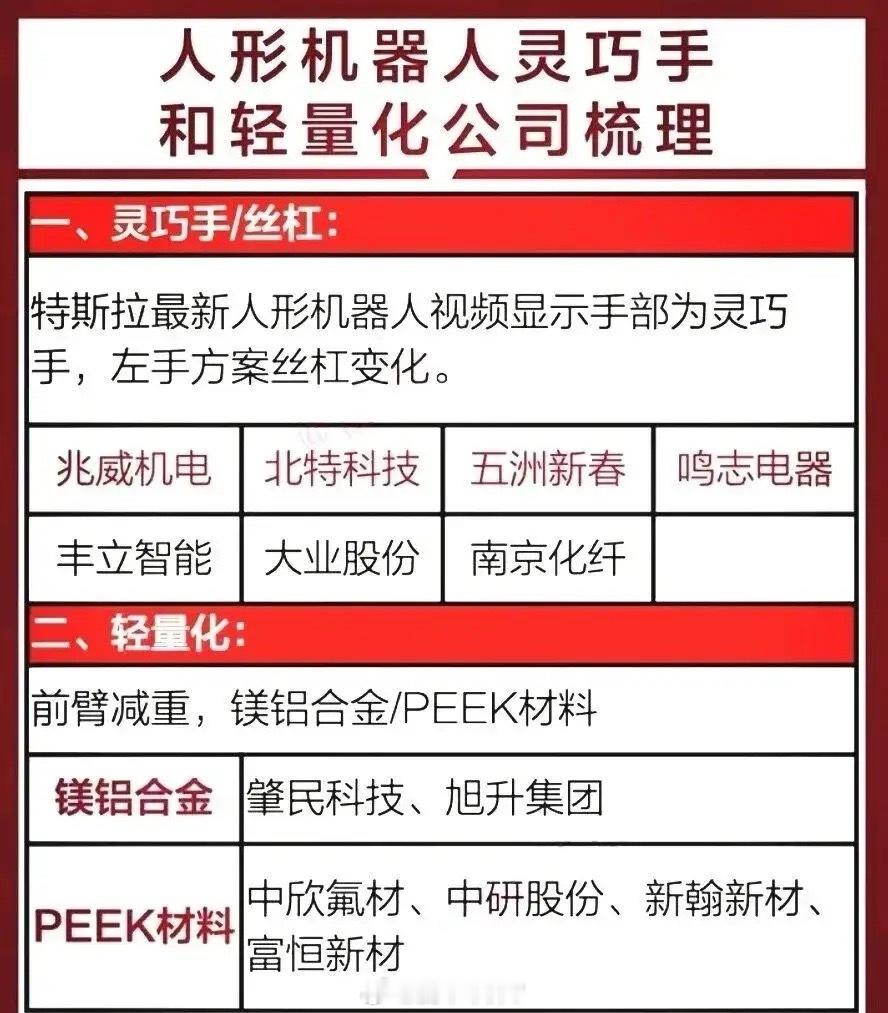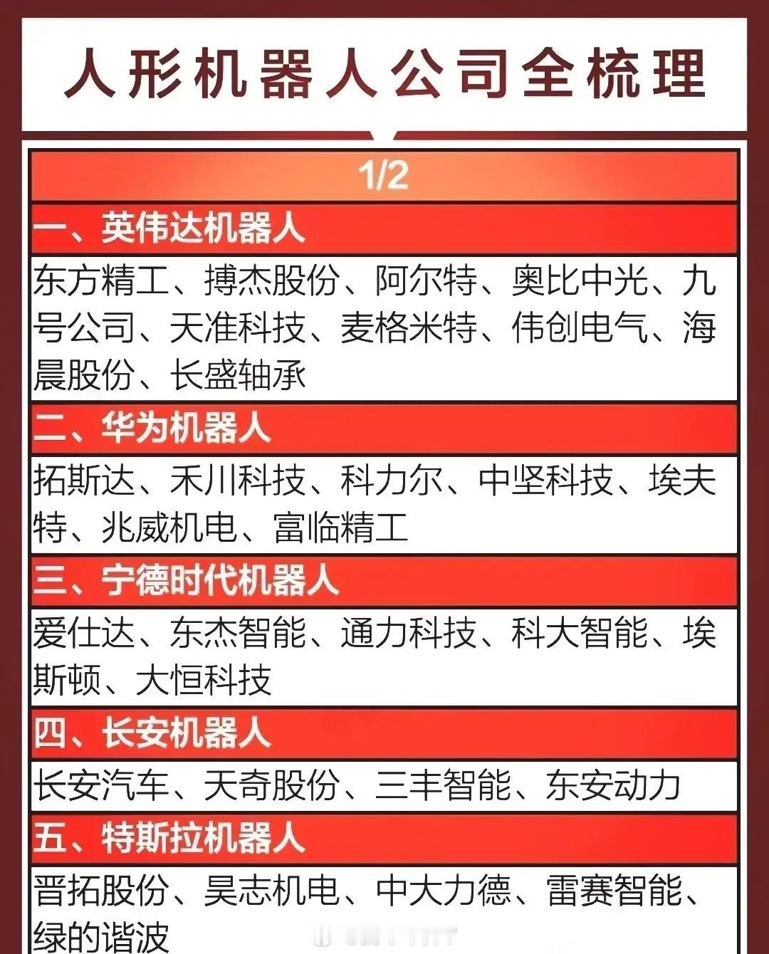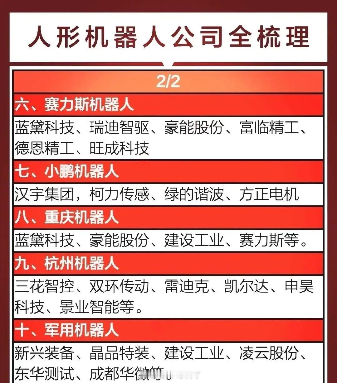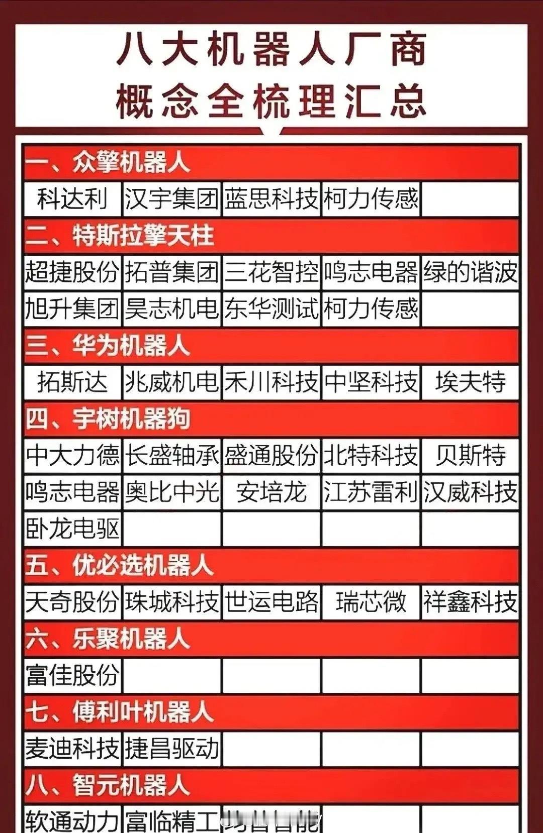 国际大利好,特朗普政府准备加速推进机器人技术发展!其核心是以机器人与先进制造助力关键产业回流美国,巩固AI“物理形态”的技术与产业竞争力。中美人形机器人行业谁更胜一筹?中国机器人技术全球排名第几?国内行业龙头企业有哪些?在人形机器人行业美国走“技术驱动”路线,波士顿动力、特斯拉等企业在仿生运动算法、具身智能融合上全球领先。而中国则以“场景驱动”为核心,依托全产业链自主可控优势,专利数量远超美国!截至2025年12月,机器人技术无统一的全球国家排名,按不同维度看中国处于全球第一梯队。机器人产业链按工业、人形、服务、核心零部件四大核心赛道分类,国内行业龙头代表有埃斯顿、宇树科技、优必选、绿的谐波等等。具体分类龙头企业名单见配图。资料取材网络仅供参考。