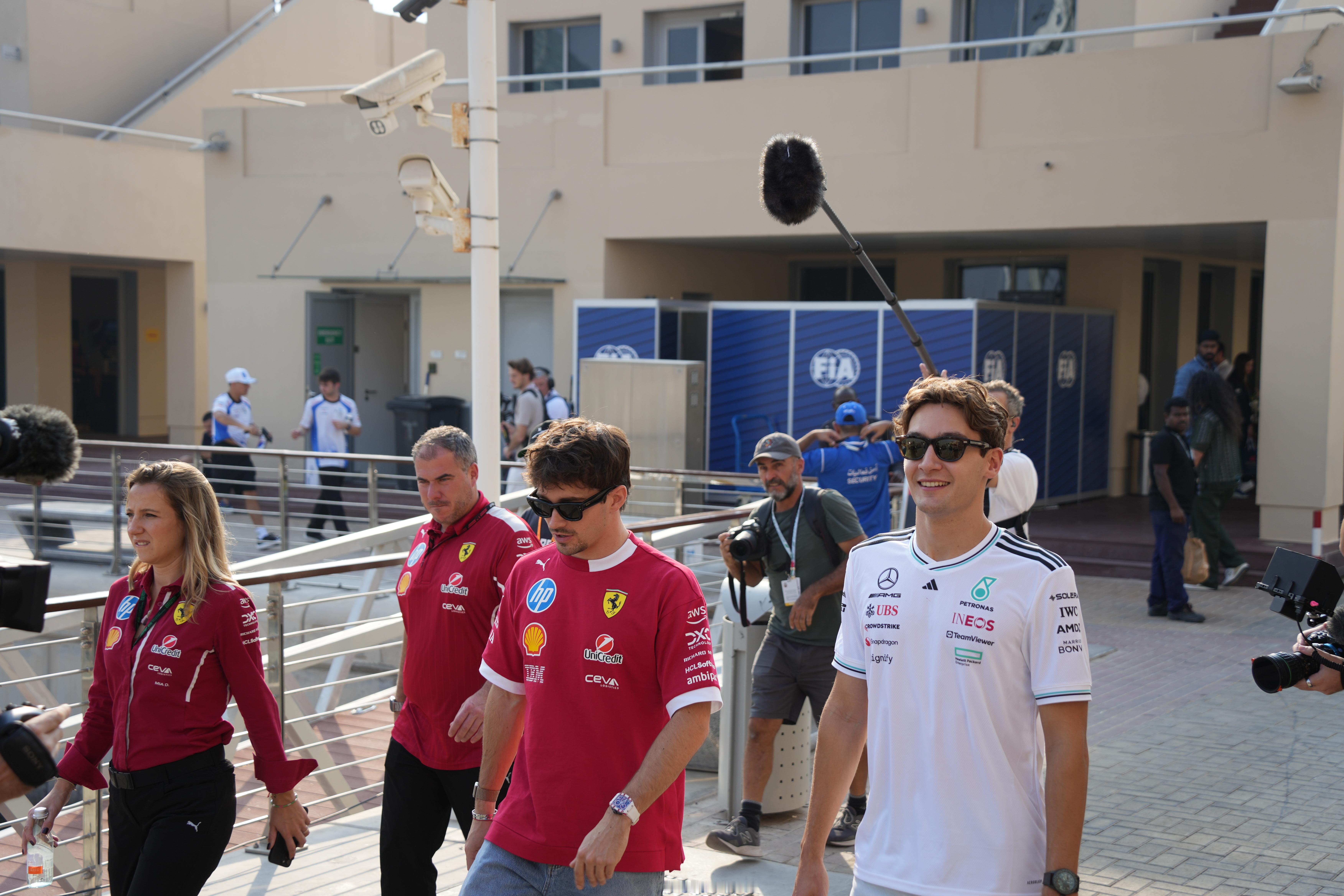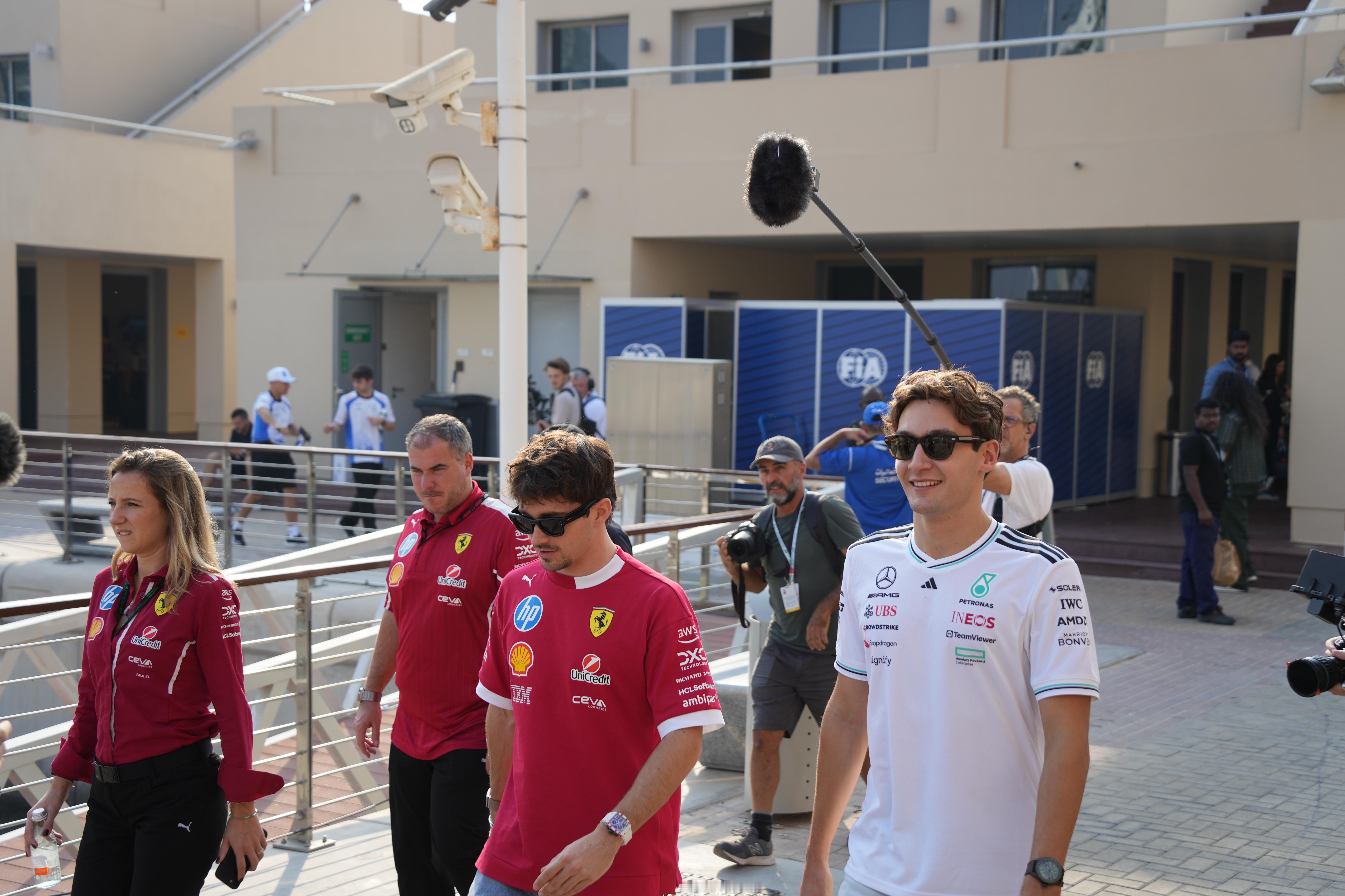 结束媒体会后,拉塞尔和勒克莱尔一起走回各自的车队休息区📸F12025F1阿布扎比大奖赛