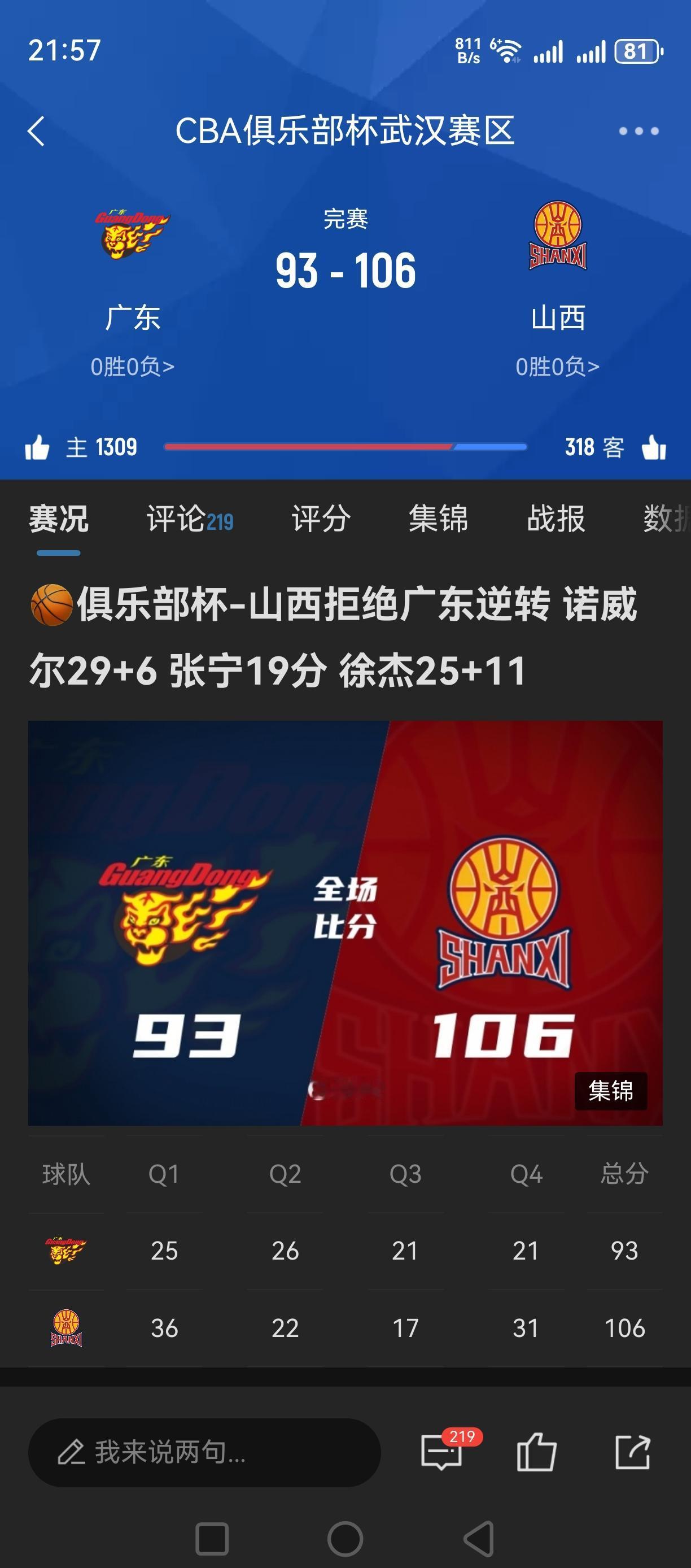 徐杰大战张宁!山西赢了广东!徐杰跟张宁都打得很棒! 三分都很准! 包括原帅,杜润旺的三分都不错! 我们有投三分不错的后卫,锋线! 但国家队一个都不用! 真是无语![捂脸][捂脸][捂脸][捂脸]