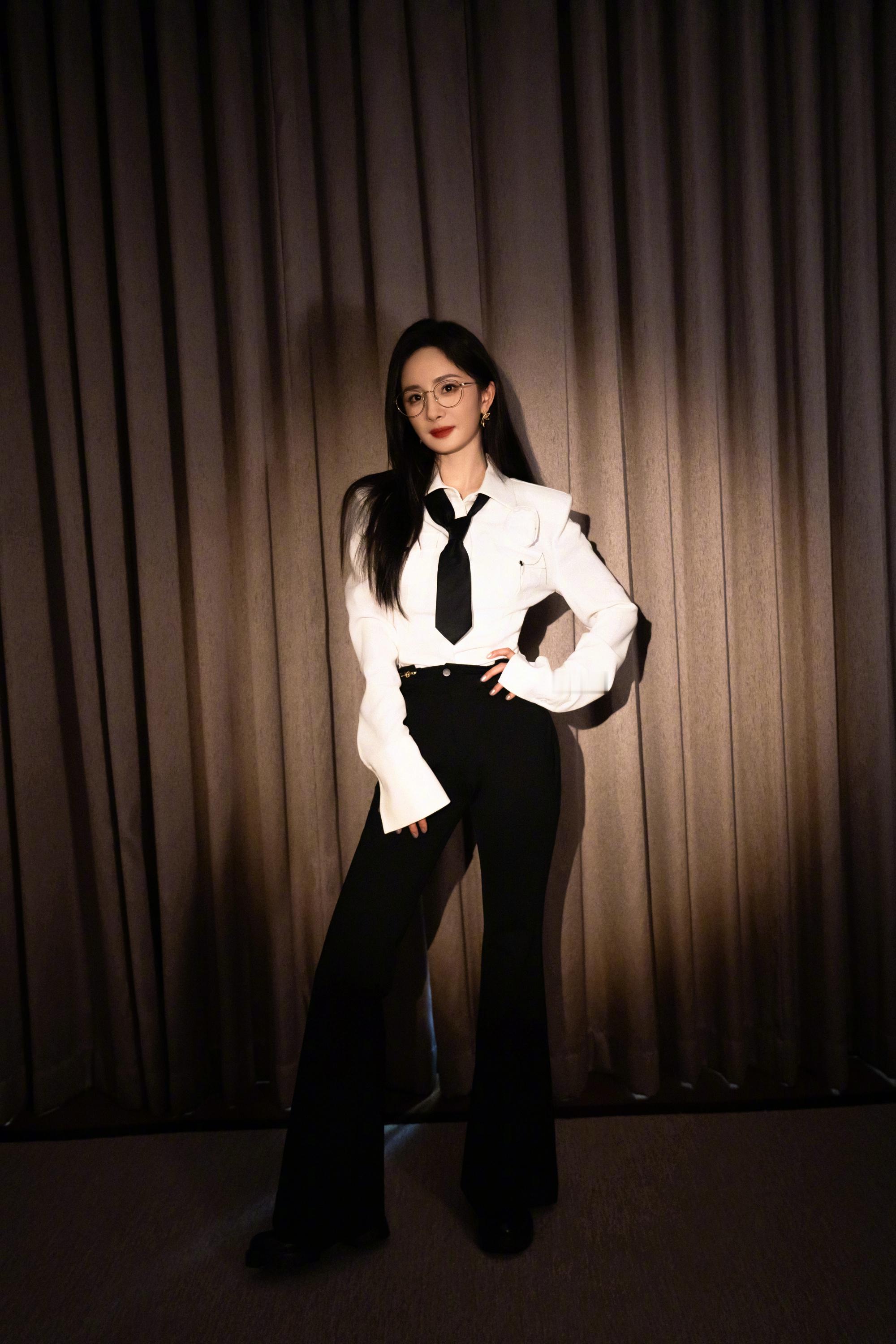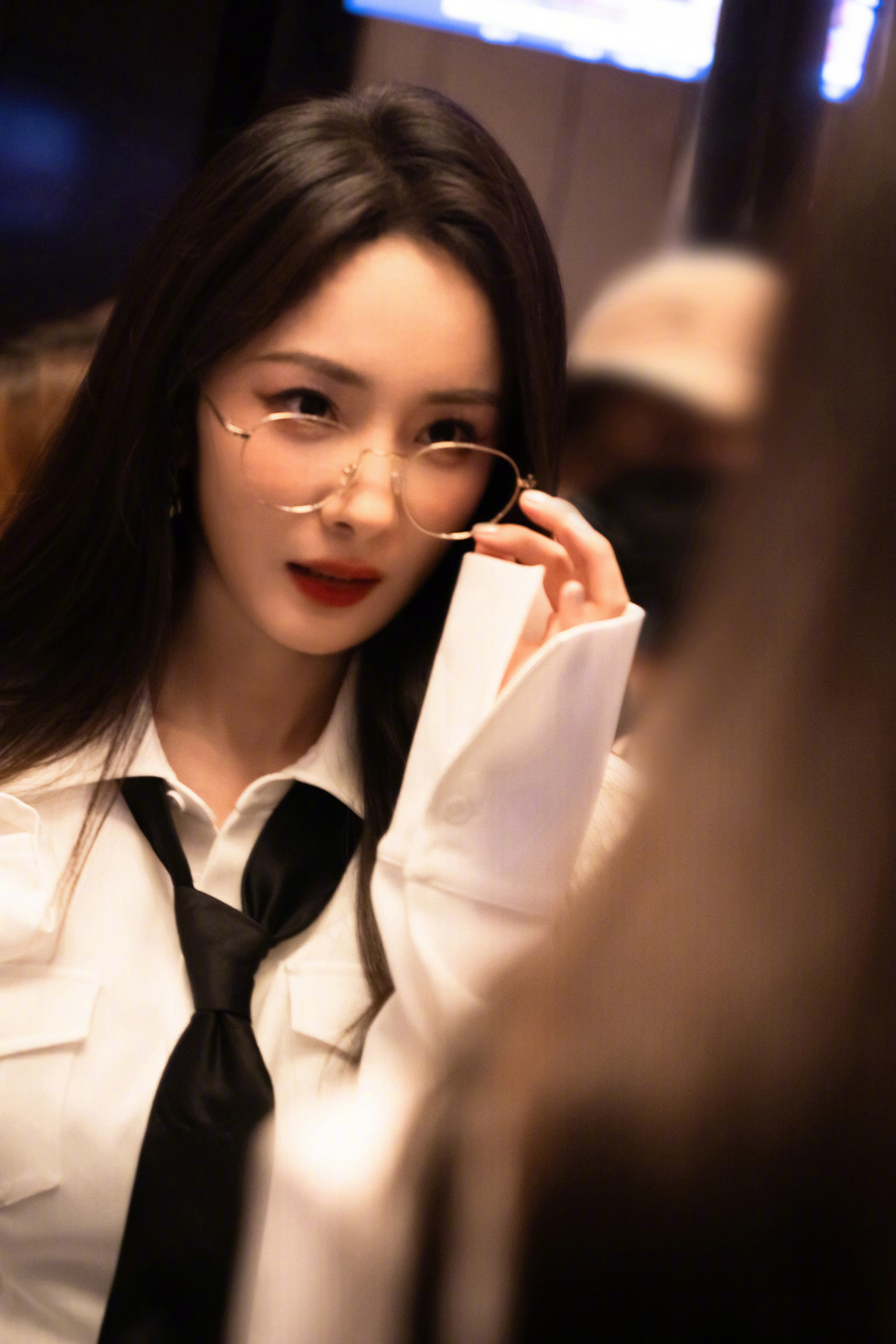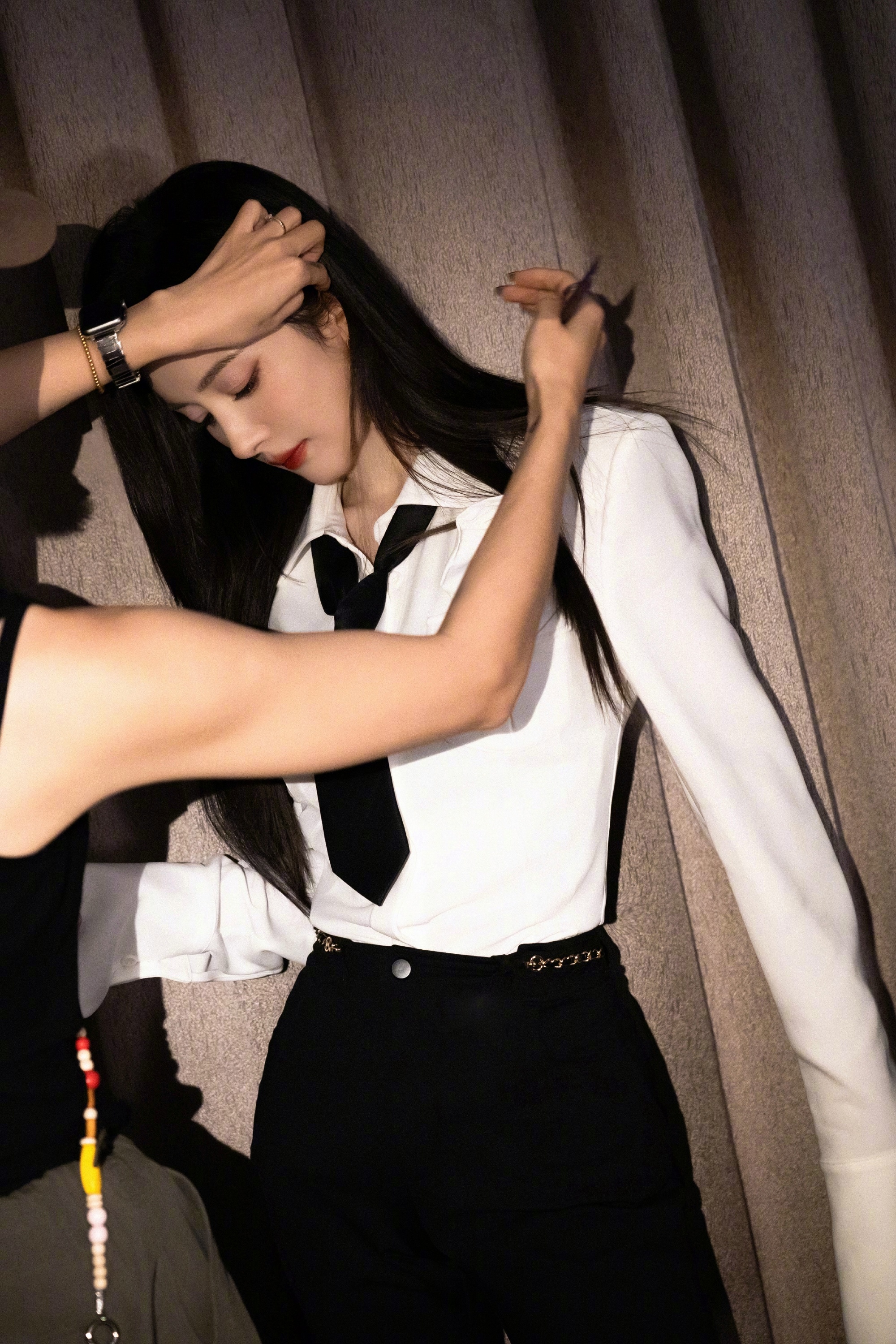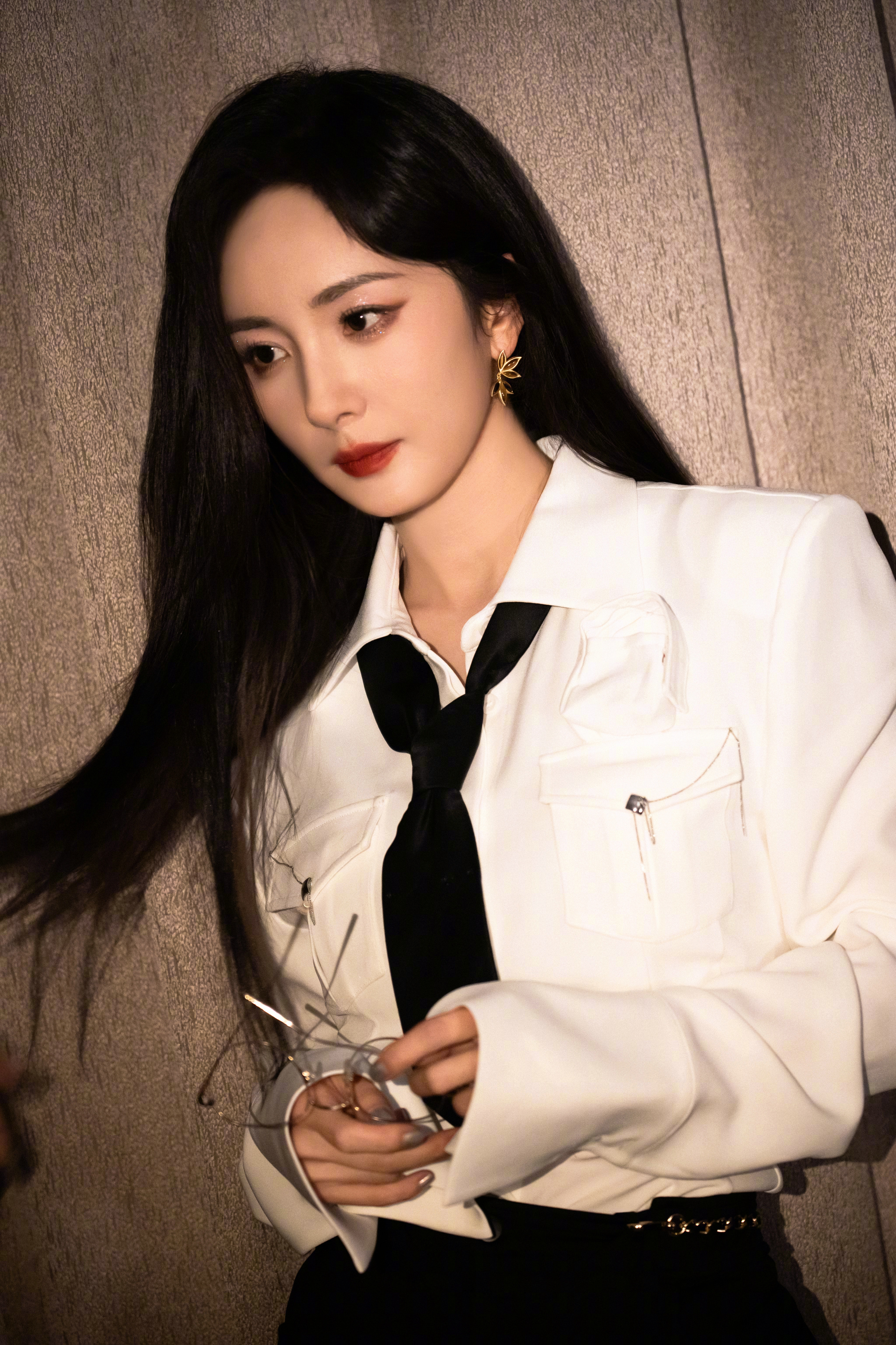 杨幂姐姐,白衣领带,美美的学姐上线。杨幂