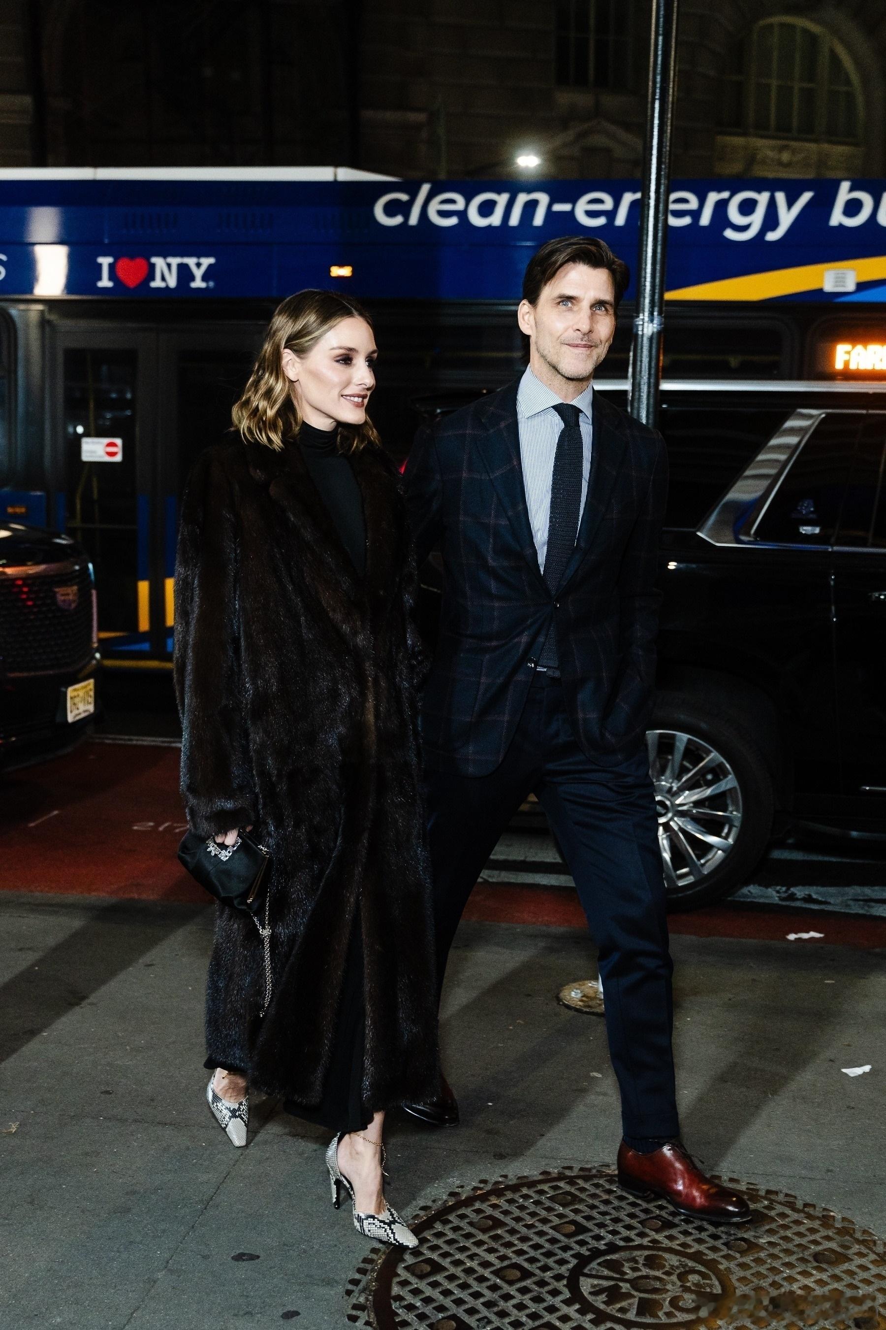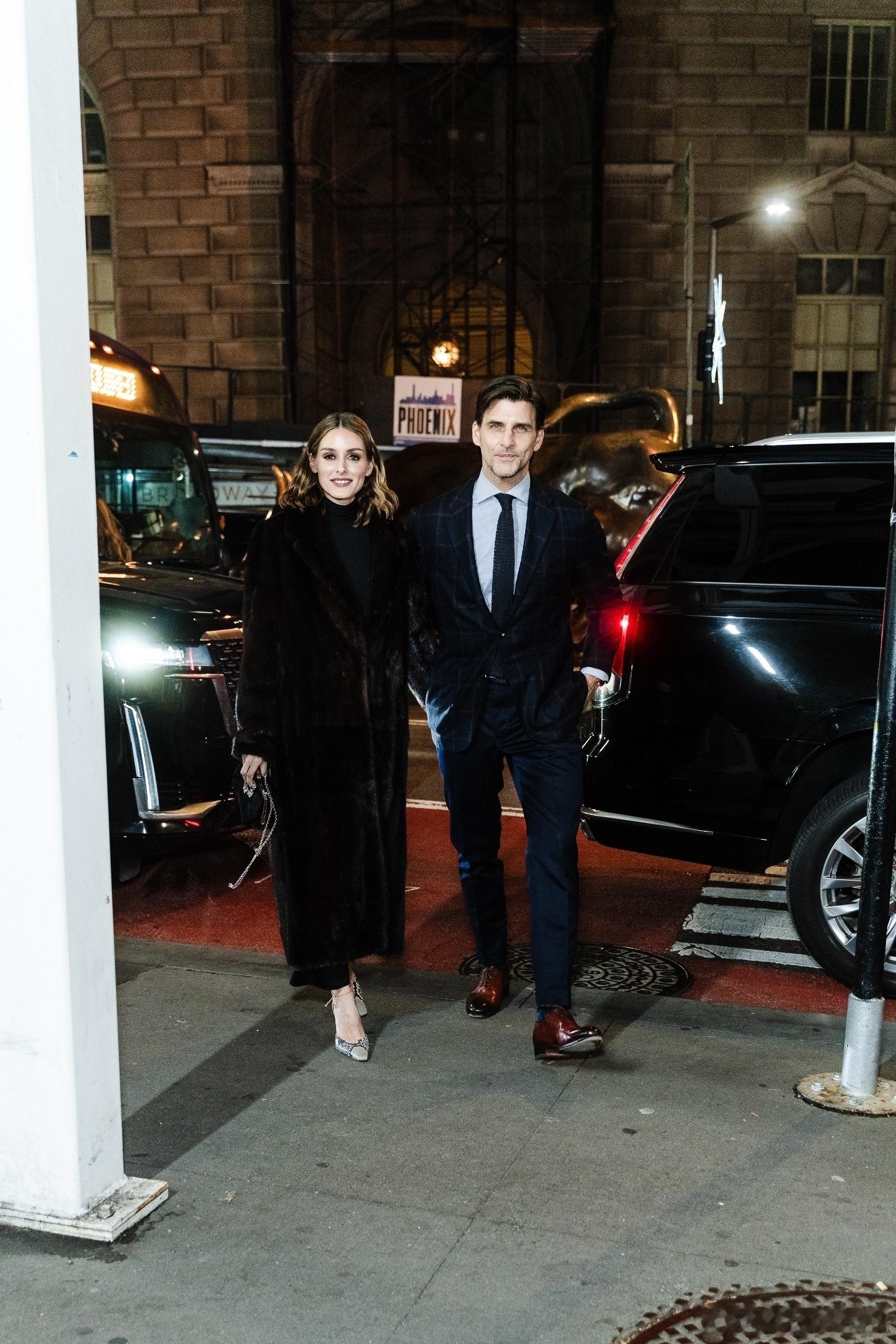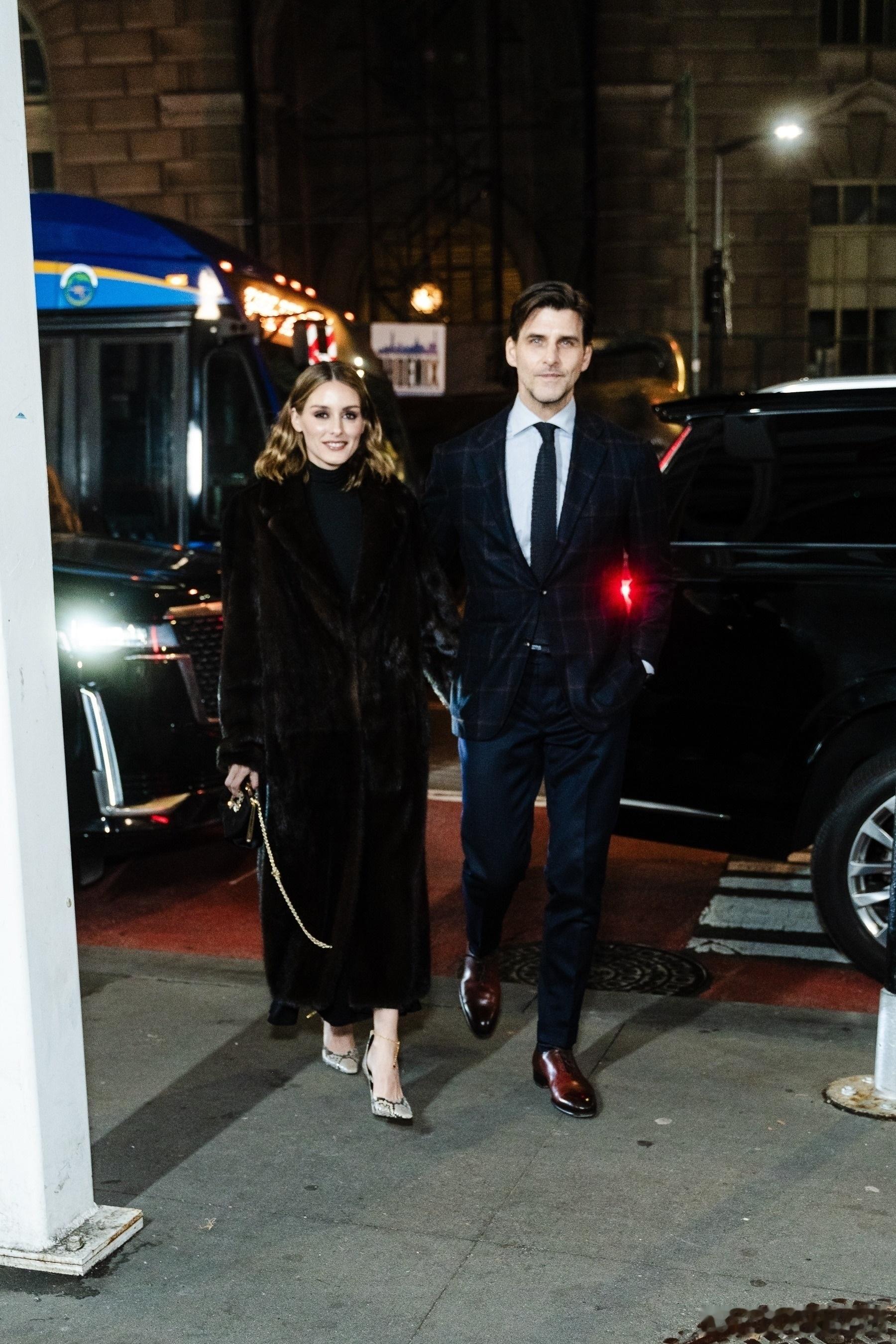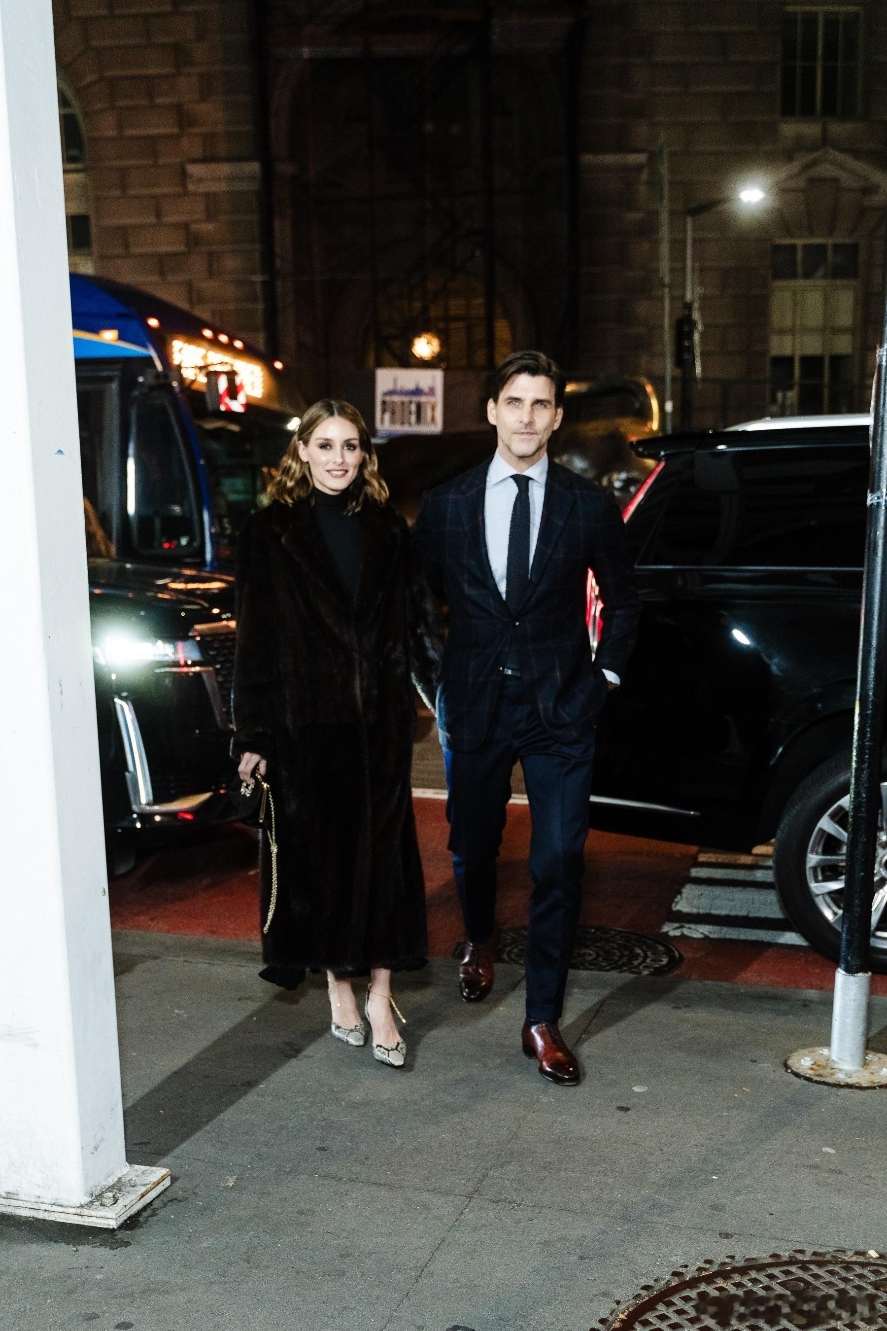 Olivia Palermo奥利维亚巴勒莫和老公Johannes Huebl约翰内斯徐贝尔在纽约外出,一起前往出席Footwear News Achievement Awards颁奖礼