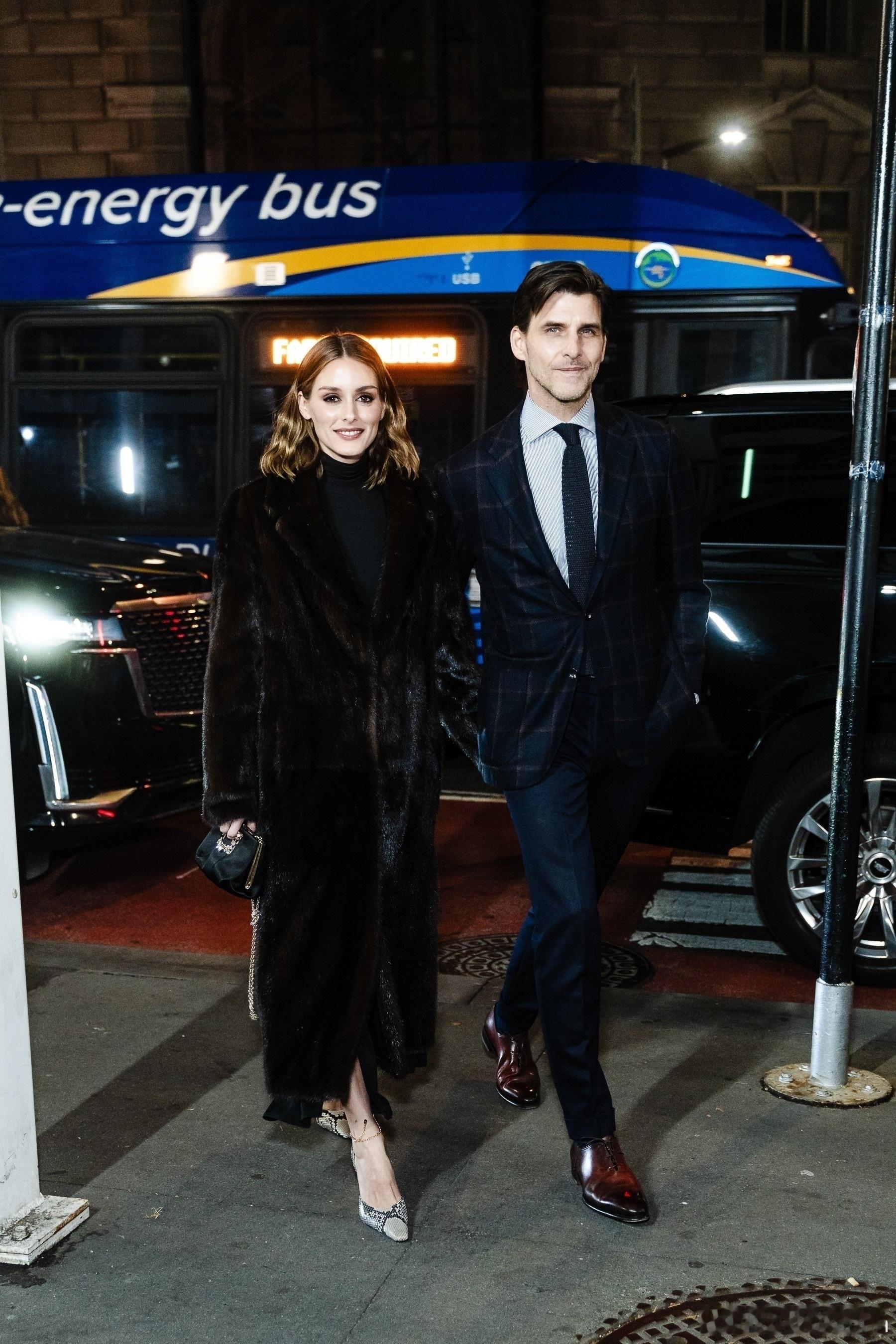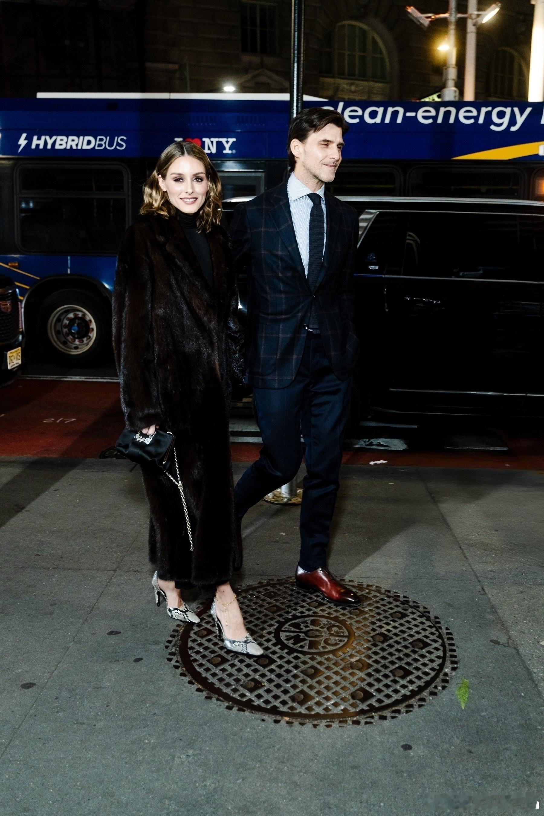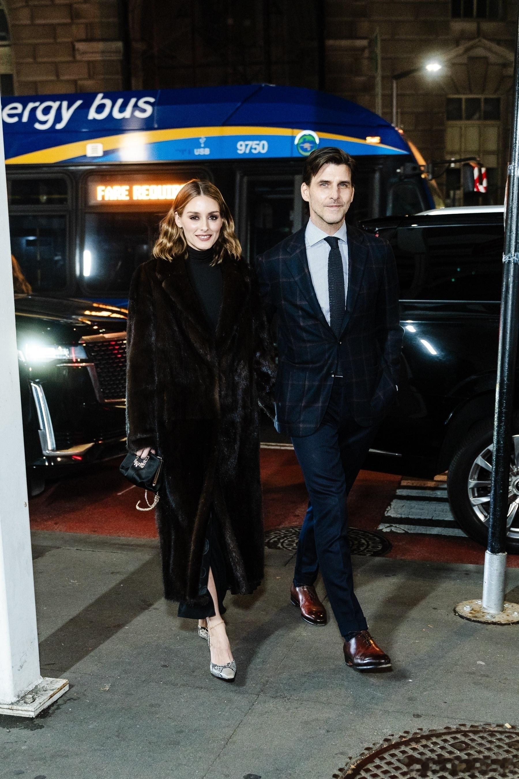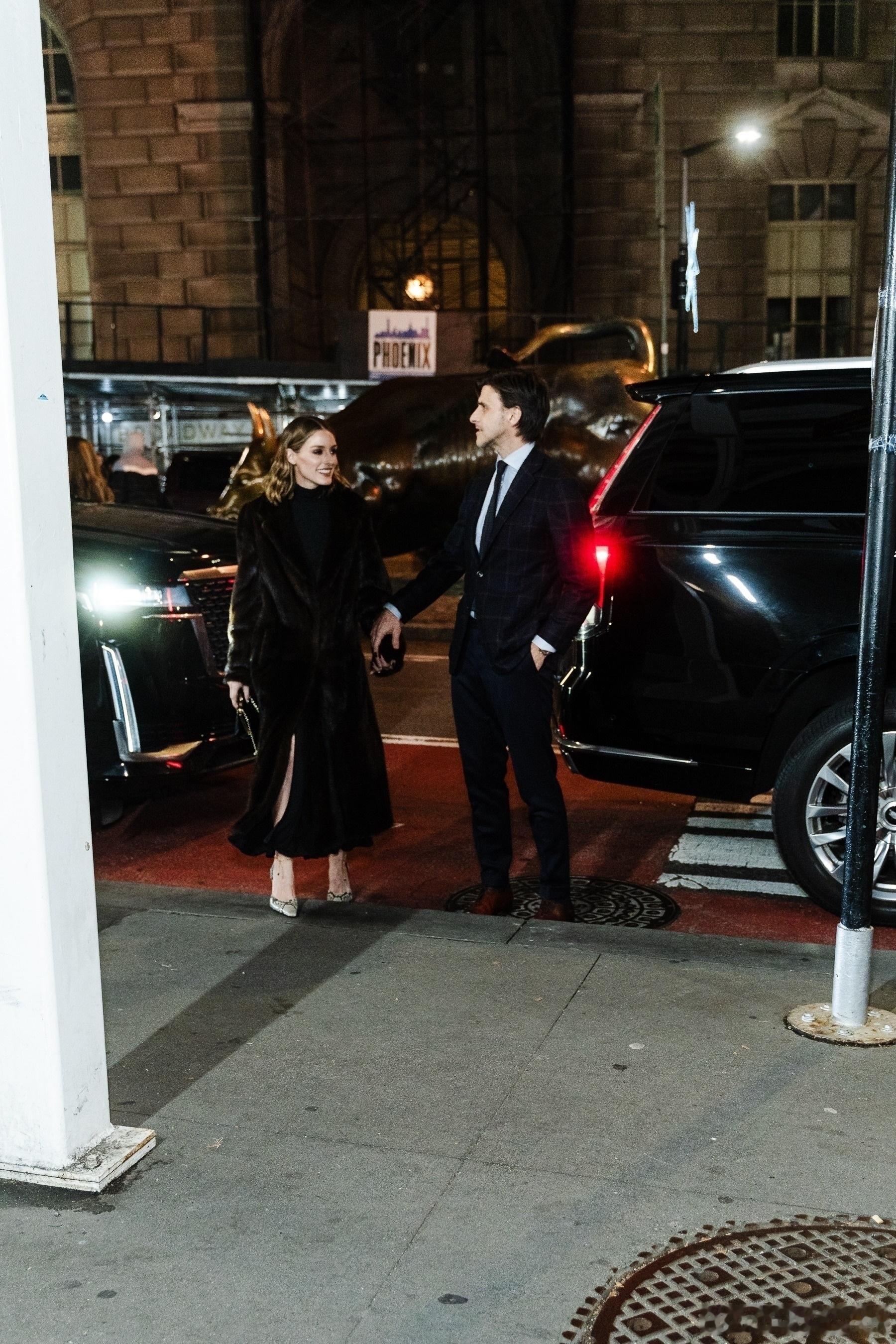 Olivia Palermo奥利维亚巴勒莫和老公Johannes Huebl约翰内斯徐贝尔在纽约外出,一起前往出席Footwear News Achievement Awards颁奖礼