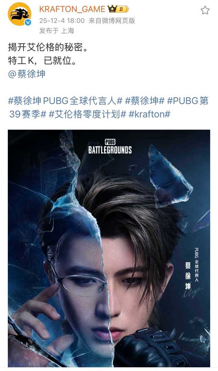 蔡徐坤空降PUBG绝地求生【史上首位全球代言人】 !这代言的含金量太牛了 蔡徐坤 PUBG