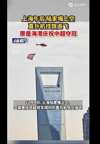 申花球迷彻底坐不住了!海港直升机又起飞了!今天是在陆家嘴上空盘旋!如果不是申花运气差点!去年和今年冠军应该属于申花!目前看到海港直升机在上海上空飞行真的太不甘心了!明年申花能否争点气呢?30轮联赛能否锁定75分呢?斯卢茨基能够做到吗?