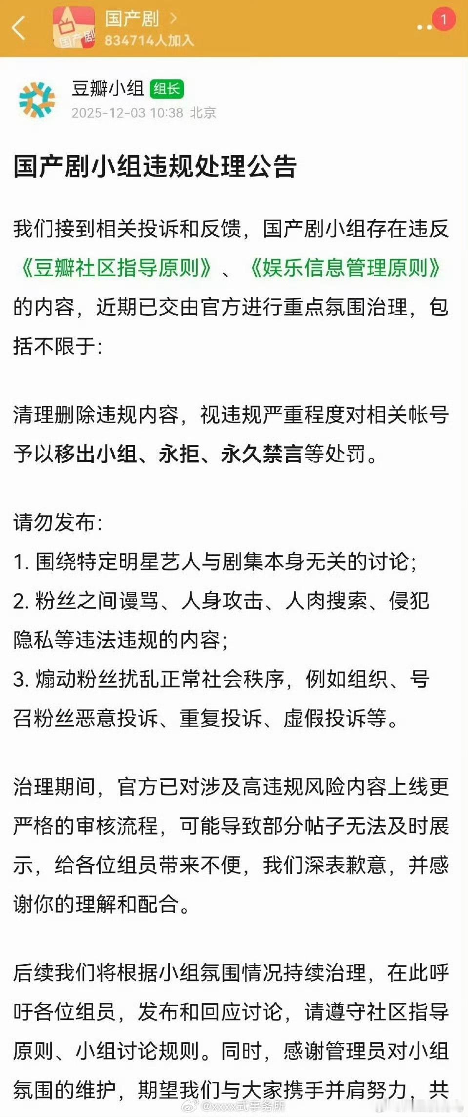 2025-12-04总结①杨旭文和陈若琳被偶遇一起去看了演唱会被网友说俩人订婚了,杨旭文工作室辟谣 图1②ab后援会跟职能站恢复工作 图2③无名之辈延期 图3④台湾禁小红书 图4⑤孟子义否认高考512分 图5撕❶国色芳华跟水龙吟争夺芒果年冠,洽洽瓜子因为宣传词烘干不含水,被杨紫粉指内涵他们,多个品牌也跟说不含水 图6洽洽瓜子推出链接恰恰瓜紫 图7豆瓣国产剧小组整顿 图8❷于正发了一张《玉茗茶骨》的海报,辟谣男主戏份少,表示男主戏份“每集都满满当当的 图9❸卢昱晓团队被指私连某站姐 图10❹🐧对之前回怼迪丽热巴粉丝的言论道歉,还送了粉丝《枭起青壤》周边用以补偿 图11❺易烊千玺工作室搬迁日,经纪人缺席却现身文淇时尚活动;易烊千玺造型工作室公开祝福文淇生日,被疑资源捆绑。图12易烊千玺后援会维权 图13❻空枪,路透,朱一龙,檀健次 图14❼罗一舟粉丝说胡连馨蹭罗一舟资源上你好星期六,剧播完还在故意捆绑 图15❽得闲谨制最新海报上增加了祖峰,廖凡和许君聪,但是没有刘昊然,据知情人说刘昊然客串了,但是戏份被删 图161号网页链接