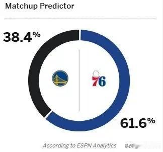 金州勇士又要输球了!明天勇士将会在客场挑战76人,今天ESPN对于明天这场比赛进行了一番预测,结果显示勇士获胜的概率仅有38.4%。 对于ESPN的预测结果,我举双手赞同,在库里因伤缺阵、巴特勒出战成疑的情况下,勇士想要击败76人简直是难如登天。