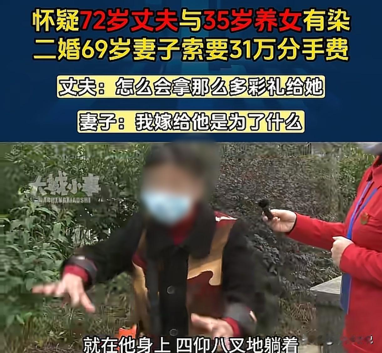 重庆,大妈说自己和丈夫结婚12年,两人是二婚,可丈夫嫌她又老又丑,跟一个30多岁的女子跑了。调解员找到女子丈夫,对方却说妻子说的那个女子是自己的养女,妻子这么做就是为了钱,他不想跟她过下去了。大妈傻眼:分开可以,你在我那里住了那么久,拿20万给我,再给我10万精神损失费,给我31万,这也是你当初承诺的彩礼钱。结局让人意想不到。 黄婆婆满脸愁容的找来调解员,称她和丈夫结婚12年了,两人都是二婚。 她原本以为自己和丈夫能够扶持着过完后半辈子,可没想到,丈夫却突然跟一个30多岁的女人跑了,还撂下话:“你又老又丑,我要找个年轻漂亮的。” 调解员找到大妈丈夫,可大爷却说那个女人是自己女儿,妻子这是在污蔑自己。 黄婆婆却在一旁质疑他:他说那是他的女儿,但是我弄不清楚。 大爷解释这个女儿是自己1990年抱养的,女儿的户口也在自己名下,之前自己没有结过婚,一直没有子女,这个女儿是自己一手拉扯大的。 虽然女儿的事情弄清楚了,黄婆婆又抱怨起前几年的事情,她说前年的时候,自己看到养女在自己床上四仰八叉的躺在自己丈夫身边,两人还对着笑。 大爷有些无奈,承认确实有过这样躺着的情况,女儿是自己养大的,好几年没回来,跟自己比较亲。 黄婆婆却不依不饶:自己当时还在旁边躺着呢,养女还跟自己说过她也不找了,以后就找个退休老头。 结果丈夫转头就跟自己说,要去找个年轻的,这让她不得不多想。 大爷急忙否认,这话女儿没跟自己说过,是跟自己妻子说的,女儿离了婚,说以后就找个退休老头过生活就算了,这就是句玩笑话。 虽然大爷给出了解释,可黄婆婆却越说越气,又说她在床头柜看到了女人的发夹,枕头上还有洗发水的香气,丈夫是个连香皂都不用的人,她怀疑丈夫跟其他女人在一起。 大爷继续解释:那个发夹和香味就是女儿的,女儿在家里进进出出的,这很正常。 面对继母的质疑,养女觉得简直不可思议,她回复说:“我跟父亲有亲密关系?这怎么可能!我30多岁,父亲70多岁了,这种事儿她都能编出来,她的话十句有十句是假的。” 调解员见状,问黄婆婆有没有实质性的证据。 黄婆婆却说自己没有证据,但是女大避父,儿大避娘,哪有这样的女儿和父亲! 大爷说妻子这么做,就是为了钱。 没想到黄婆婆还真的委屈上了,丈夫当初承诺过,让人介绍对象,他会给自己钱的。 当时他说先交20万给自己,过段时间再给10万,总共交30万给自己保管。 可这钱自己管了2年,就被丈夫把卡要回去了。 大爷却表示妻子从自己卡里取走了3万多,自己还给了她8000多现金,妻子买个电视,让自己出1000,孙女满10岁,喊自己出2000。 他一个月一共就1000多,在妻子那儿早就花完了。 黄婆婆不乐意了:他只给了我八千,我找丈夫,不找他要钱,找谁要?找男人靠男人,谁不靠男人,我们是夫妻关系! 大爷实在受不了了,提出两人离婚,各过各的。 黄婆婆一听,立马提出条件:分开可以,那就得给我生活费。你在我这儿住了那么久,房租总得出,拿20万给我,再赔我10万精神损失费,一共给31万分手费,就当是他当时拿的彩礼钱。 大爷气得直摇头:我怎么可能拿那么多彩礼给她,一分钱都给不了,凭啥给她钱! 调解员联系了律师,律师表示黄婆婆的诉求不合理。 解除婚姻是没有彩礼一说的,缔结婚姻的时候才有。 关于夫妻存续期间的房租和生活费,属于夫妻之间相互扶助的义务,并不是商业行为中的等价有偿给付义务。 大爷和黄婆婆在婚姻存续期间,本就应相互扶持,不能将这种扶助义务转化为金钱上的等价交换。 另外婚姻关系不属于侵权行为,黄婆婆要精神损失费的诉求也是得不到支持的。 得知自己拿不到钱,黄婆婆的态度软了下来,她表示还是希望丈夫能回来,两人和好是最好的。 可大爷却态度坚决,自己绝对不会和她和好了,她反正都是为了钱,无论什么时候都只谈钱,他坚决要求离婚。 夫妻离婚,一方索要“分手费”合理吗? 男女恋爱分手,单纯以结束恋爱关系为由索要费用,法院通常不会判决一方必须支付给另一方。 这是因为恋爱关系属于平等自愿的民事交往,法律并不强制规定分手时必须进行经济补偿。 但是在一些特殊情况下,如果一方自愿给予另一方经济补偿,在协议不违反法律规定、不违背公序良俗的情况下,这种约定有效,受法律保护。 夫妻离婚,双方可以分割夫妻共同财产,若一方在婚姻中负担较多,如抚育子女、照料老年人、协助另一方工作等,离婚时有权向另一方请求补偿,另一方应当给予补偿。 《民法典》第1059条规定:夫妻有相互扶养的义务。需要扶养的一方,在另一方不履行扶养义务时,有要求其给付扶养费的权利。 夫妻之间有相互抚养的义务,一味的谈钱,只会让婚姻变味。 夫妻双方应该相互理解、相互信任,遇到问题及时沟通,而不是互相猜疑、指责。