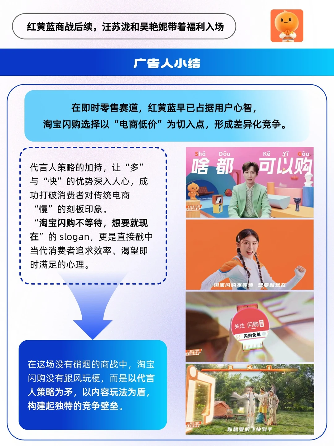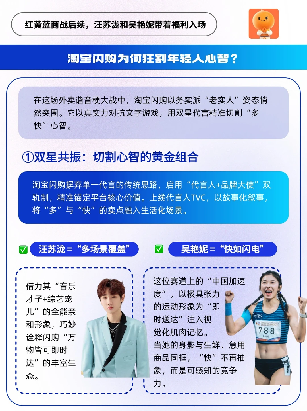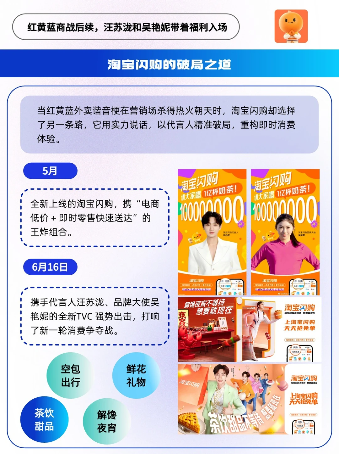 🔵6月16日,淘宝闪购重磅推出由代言人汪苏泷、品牌大使吴艳妮演绎的全新 TVC,通过精准的代言人策略,将品牌价值与用户需求深度绑定。