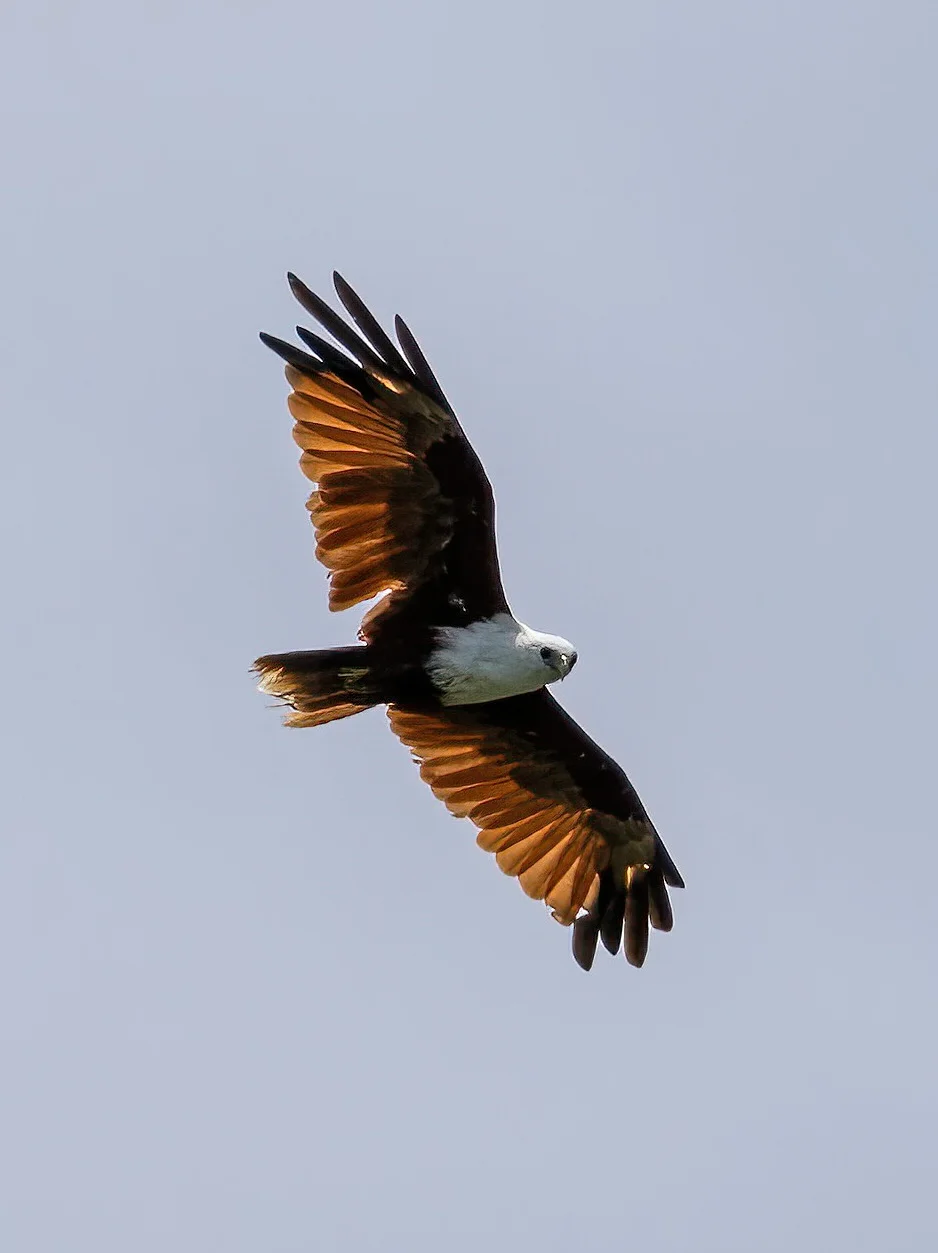 原创拍摄 栗鸢,鹰形目鹰科栗鸢属。 栗鸢的色彩在猛禽界是独树一帜的特别,砖红色的体羽+鲜明的白头和胸。逆光透着飞羽就更红了。 栗鸢大多分布于印度次大陆、东南亚及澳大利亚,在我国是边缘分布,就比较少见,最近几年在我国南方省份偶有记录,在重庆的猛禽迁徙中也能记录到。在常规分布地还是挺常见的。