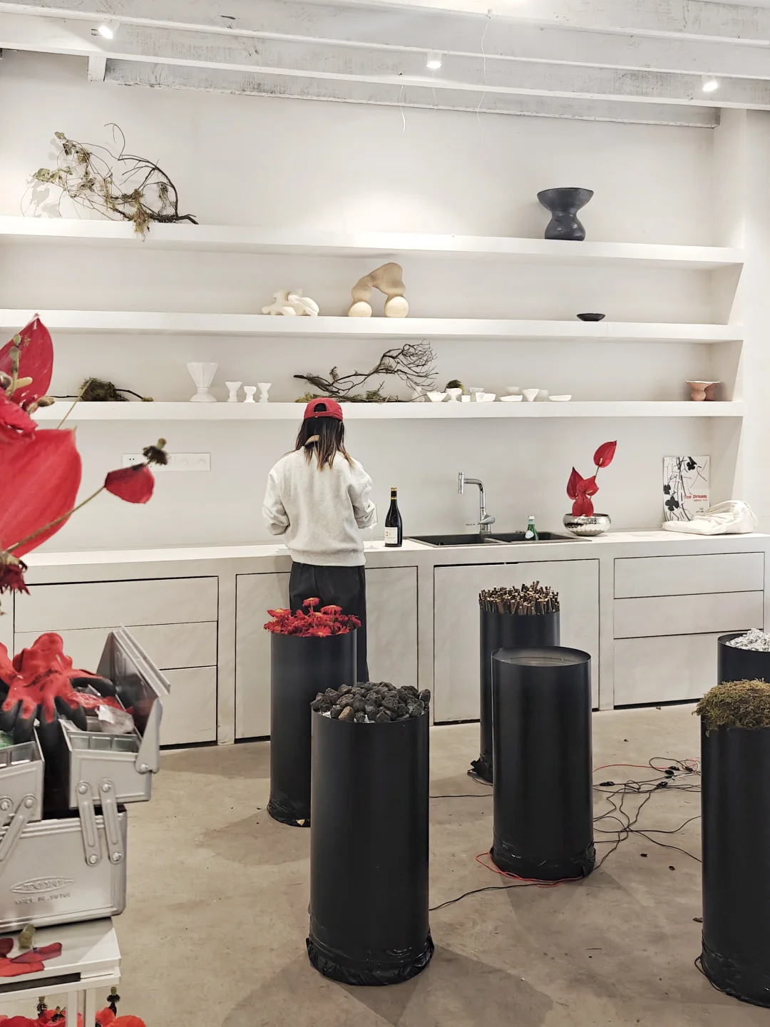 一侧陈列了艺术家制作植物雕塑时日常使用的工具。