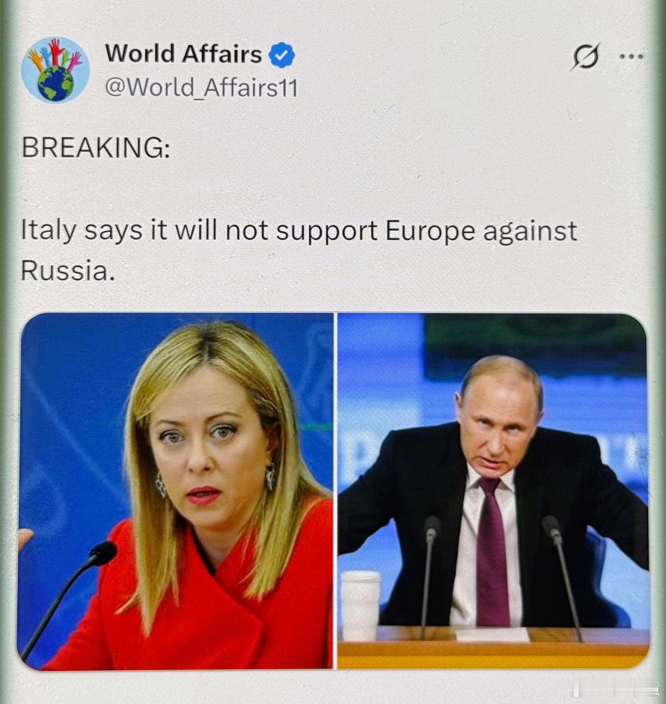 突发!发生了什么?意大利总理梅洛尼称不会支持欧洲对抗俄罗斯!核心是能源依赖+经济压力+欧盟分歧,梅洛尼以务实为本,拒为对抗埋单、护本国利益。