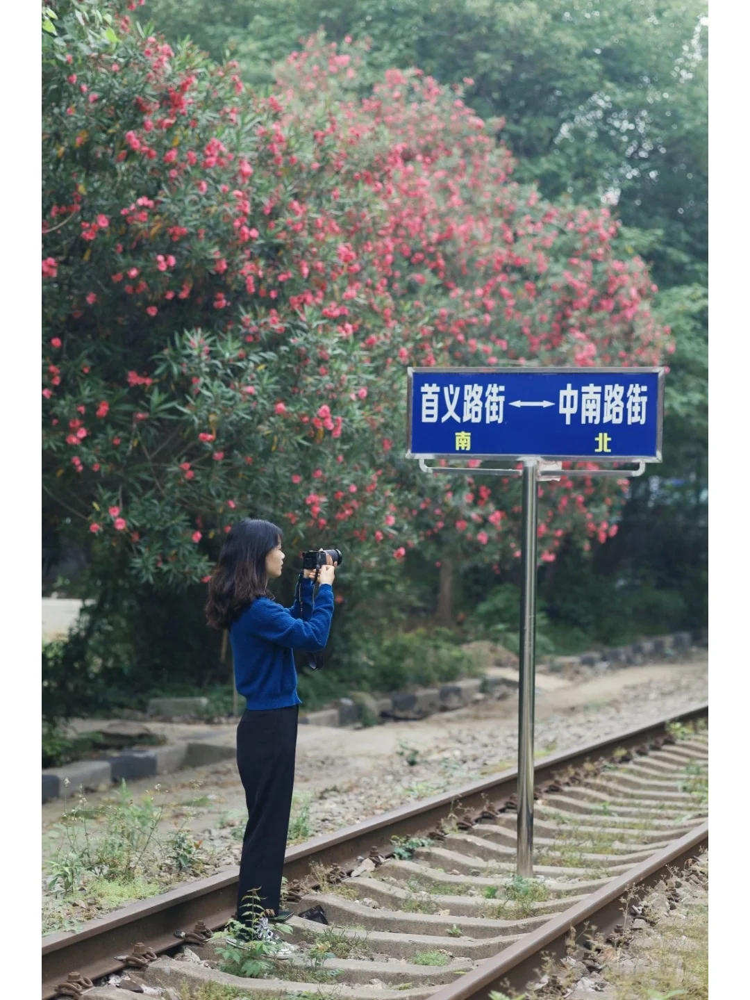 武汉鲜花铁轨/摄影/武汉小众拍照/武汉夹竹桃
