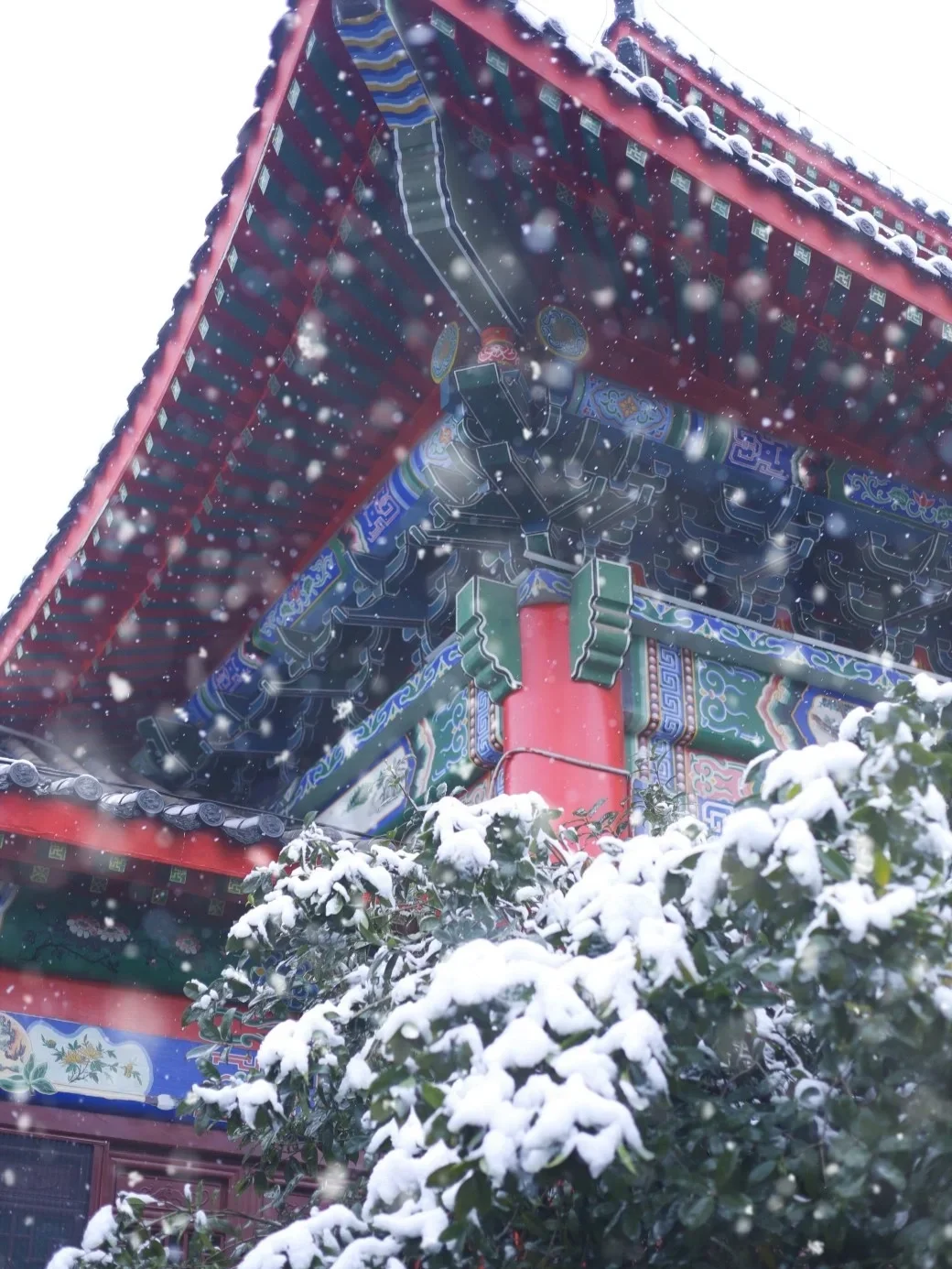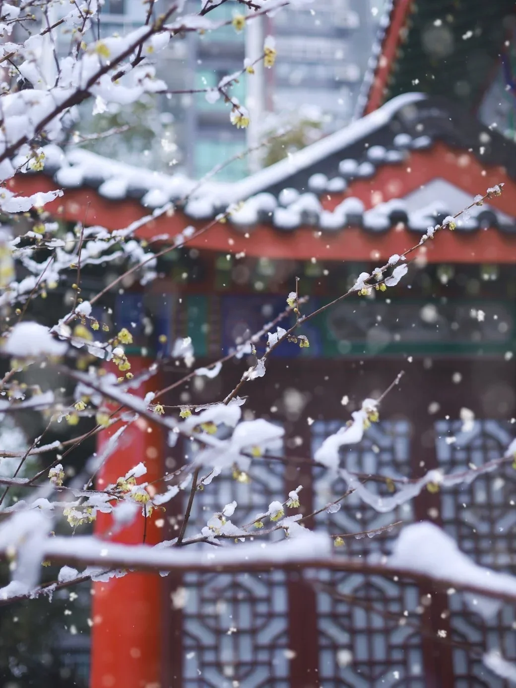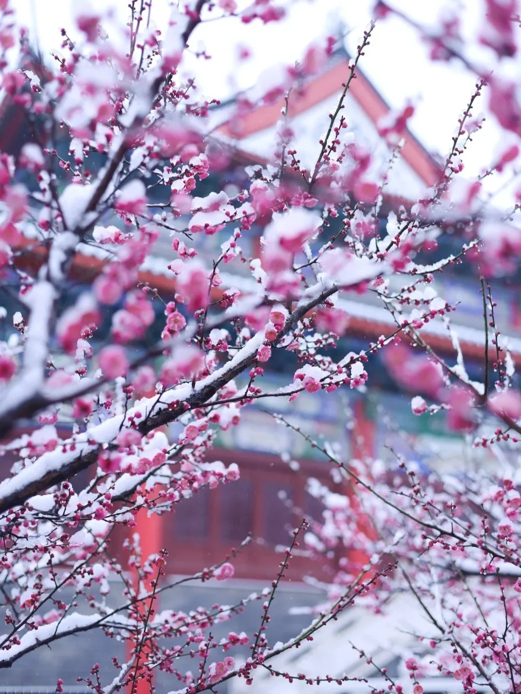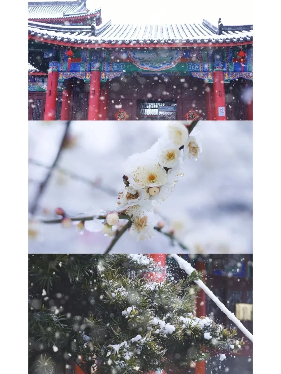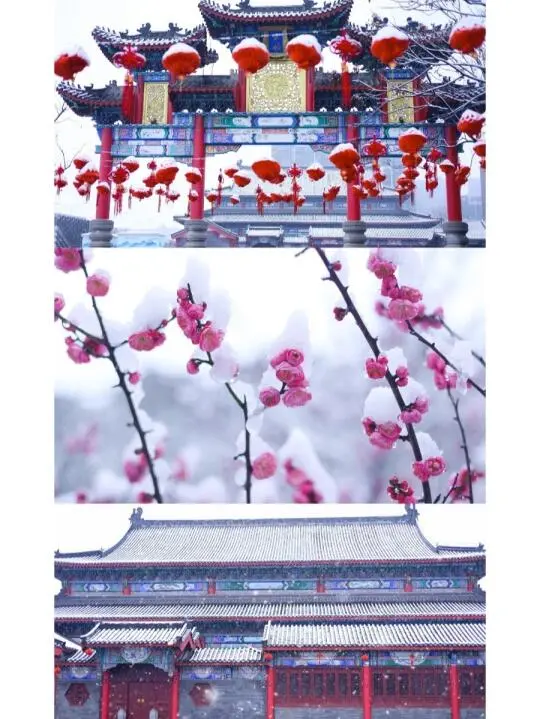 古风建筑,红墙白雪,踏雪寻梅,真的诗情画意