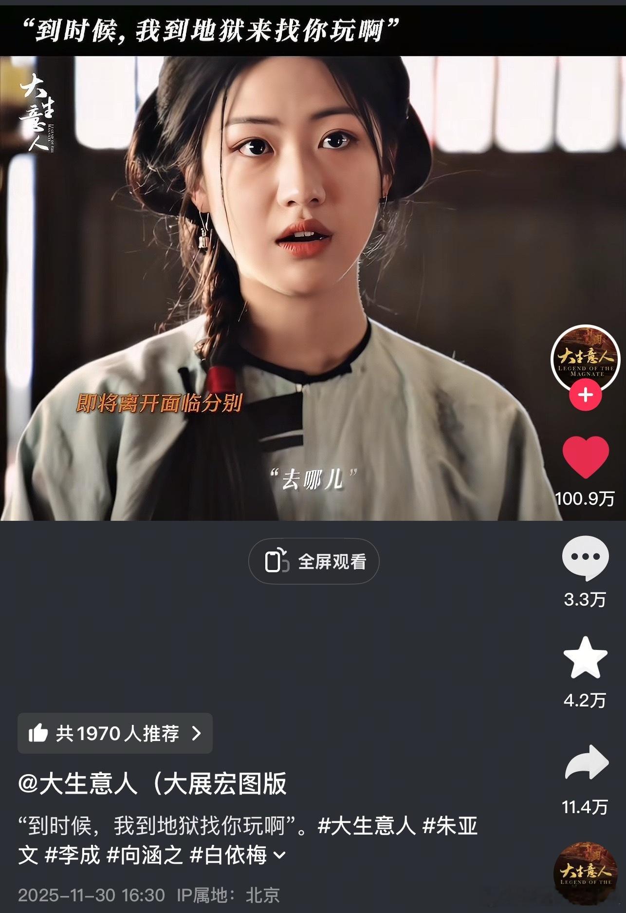 大生意人官抖的第一个百万视频诞生了,来自朱亚文和向涵之。