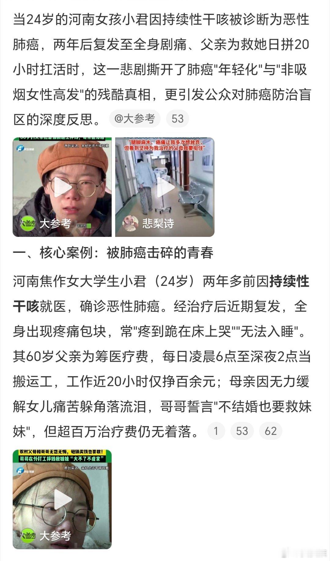 24岁女生咳嗽不止查出肺癌唉!这么年轻就患上了这种疾病,她的家人是多么难过!希望大家一起献爱心,帮帮这位女孩!