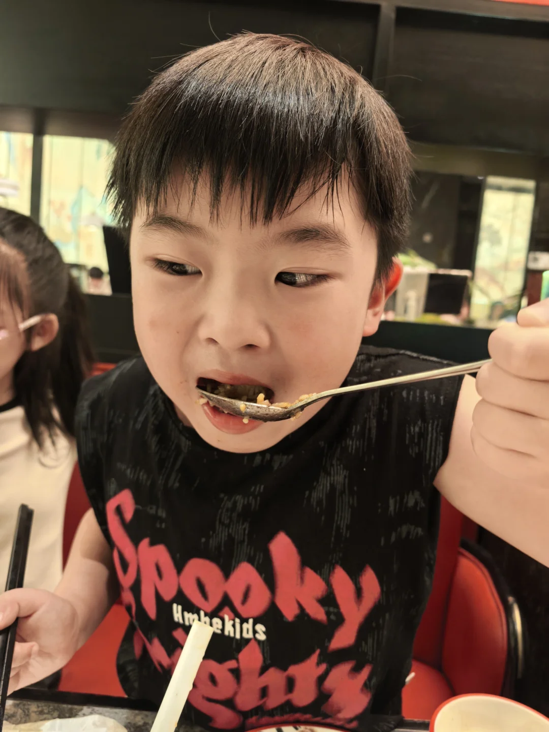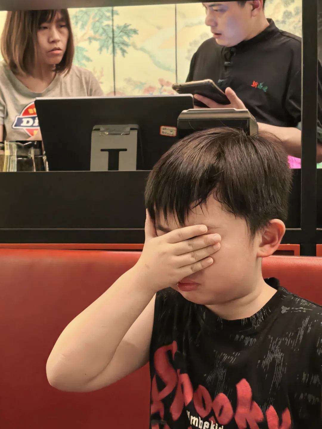 吃饭前和表姐有些小矛盾,哭了 后面好吃的😋来了,也不哭了 果然是吃货