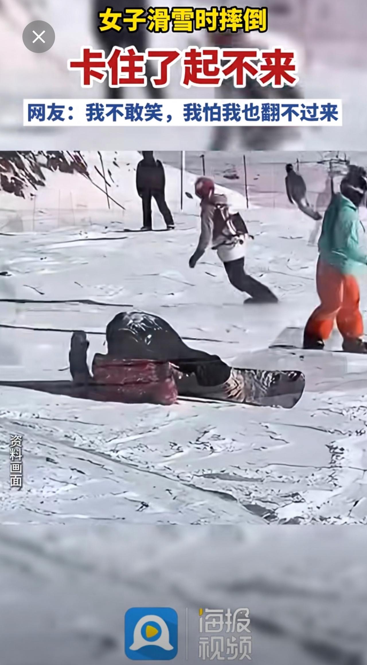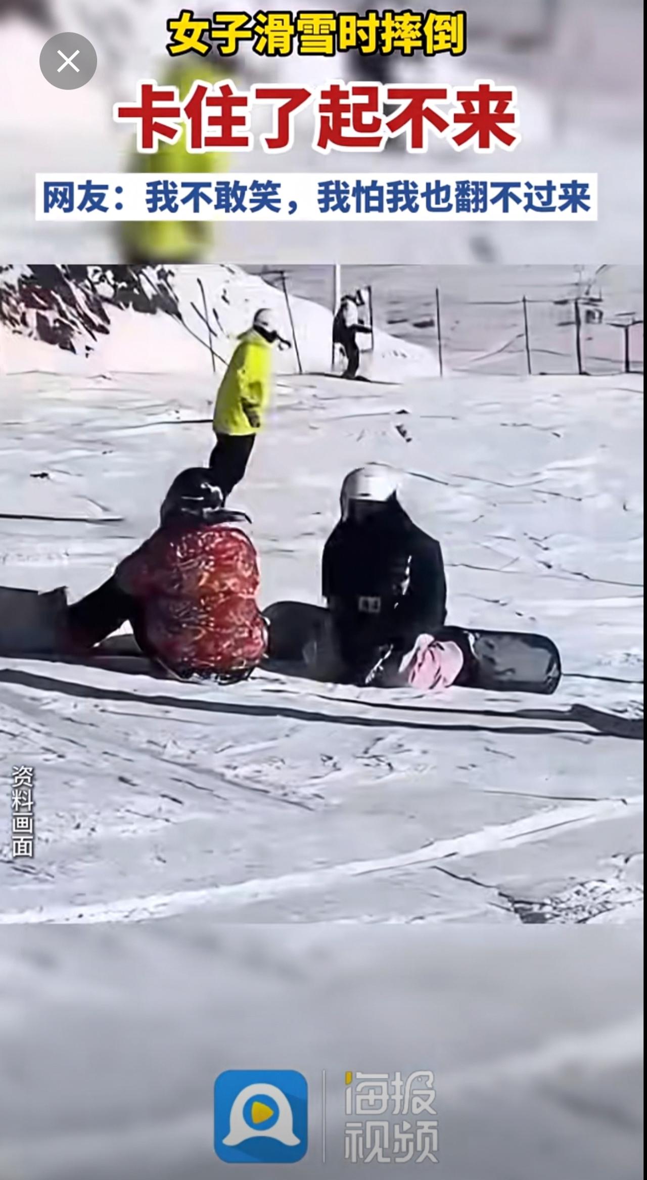 女子在滑雪时摔倒,姿势过于尴尬了!(来源:鹊华视频 编辑:计晓杰)滑雪摔倒的一百种方式