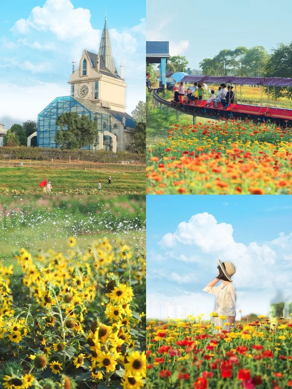 ✔️各种花海上新,有百日菊、向日葵、地肤草、醉蝶花等,晚上还能看表演和烟花秀,超级出片,仿佛闯入童话世界