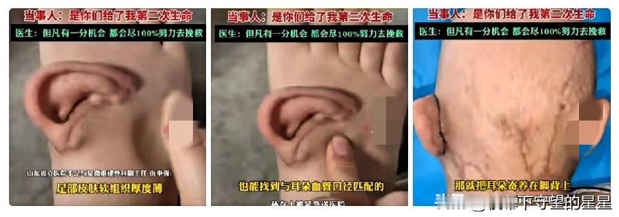 真是闻所未闻!女子意外导致左耳离断,医生竟把耳朵“寄养”在她的脚背上,一养就是5个月! 原来,这样做是为了给离断的耳朵供血,保住“活”的组织。5个月里,耳朵在脚背上慢慢“存活”,医生再通过手术把它移植回左耳位置。 网友看了直呼神奇:“这操作也太牛了!脚背上养耳朵,第一次见!”“医生的技术太绝了,相当于给耳朵‘续命’成功!” 不得不说,医学技术真是越来越发达,能让离断的器官重新“回家”,太让人惊叹了!