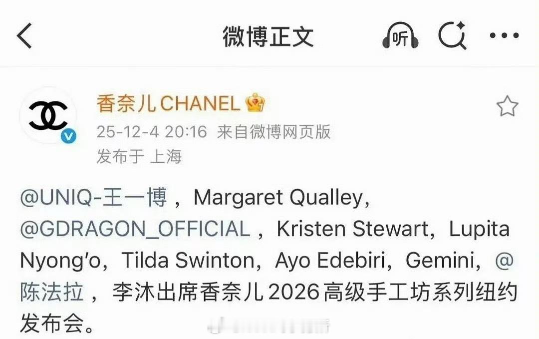 王一博在香奈儿的待遇 在内地认领第一顺位,INS 唯一认领的亚洲面孔