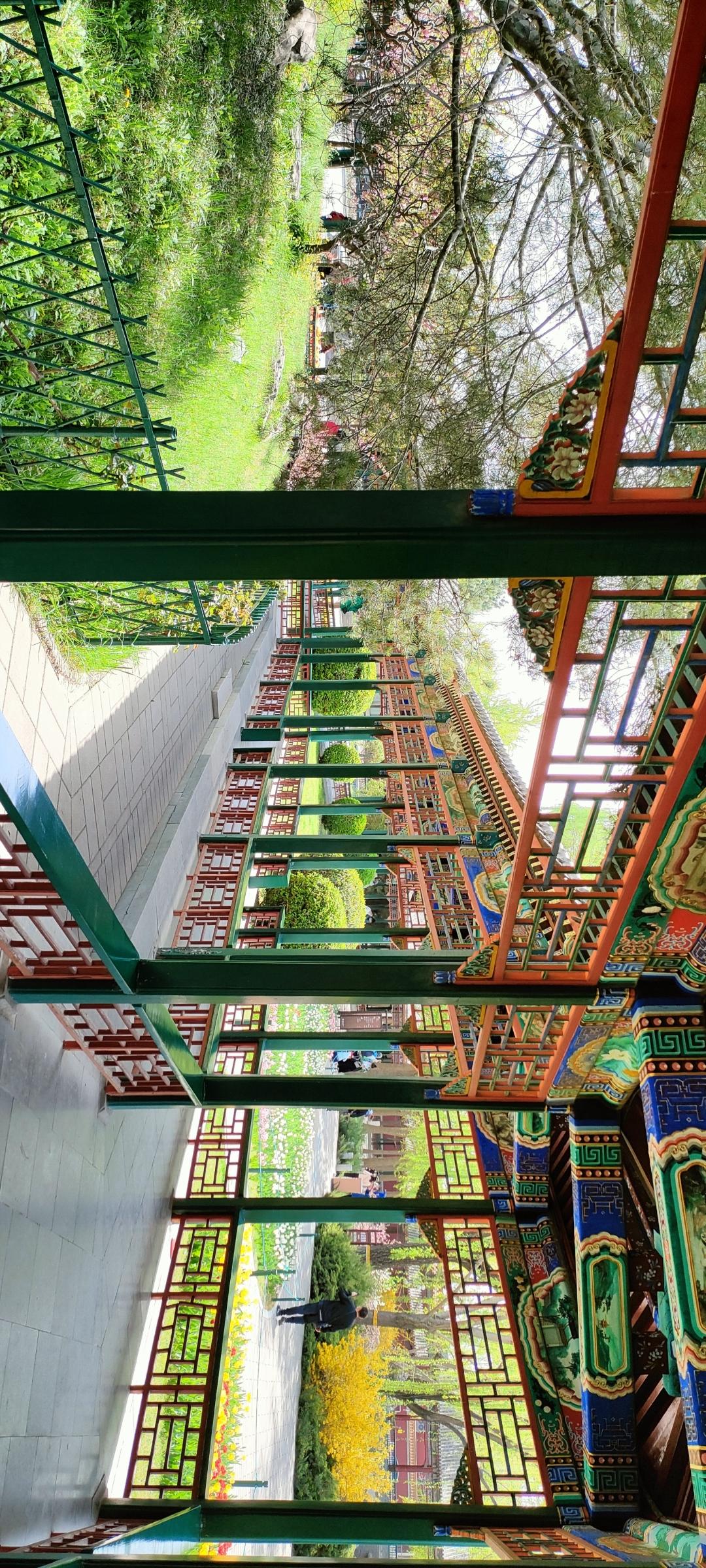 色彩斑斓的郁金香花海,与古色古香的亭台楼阁相映成趣,美不胜收!🌷🏯