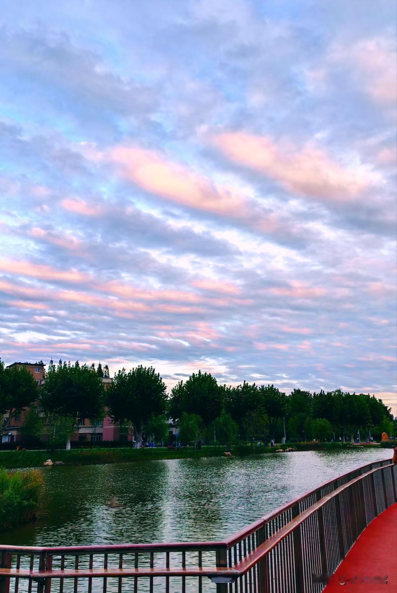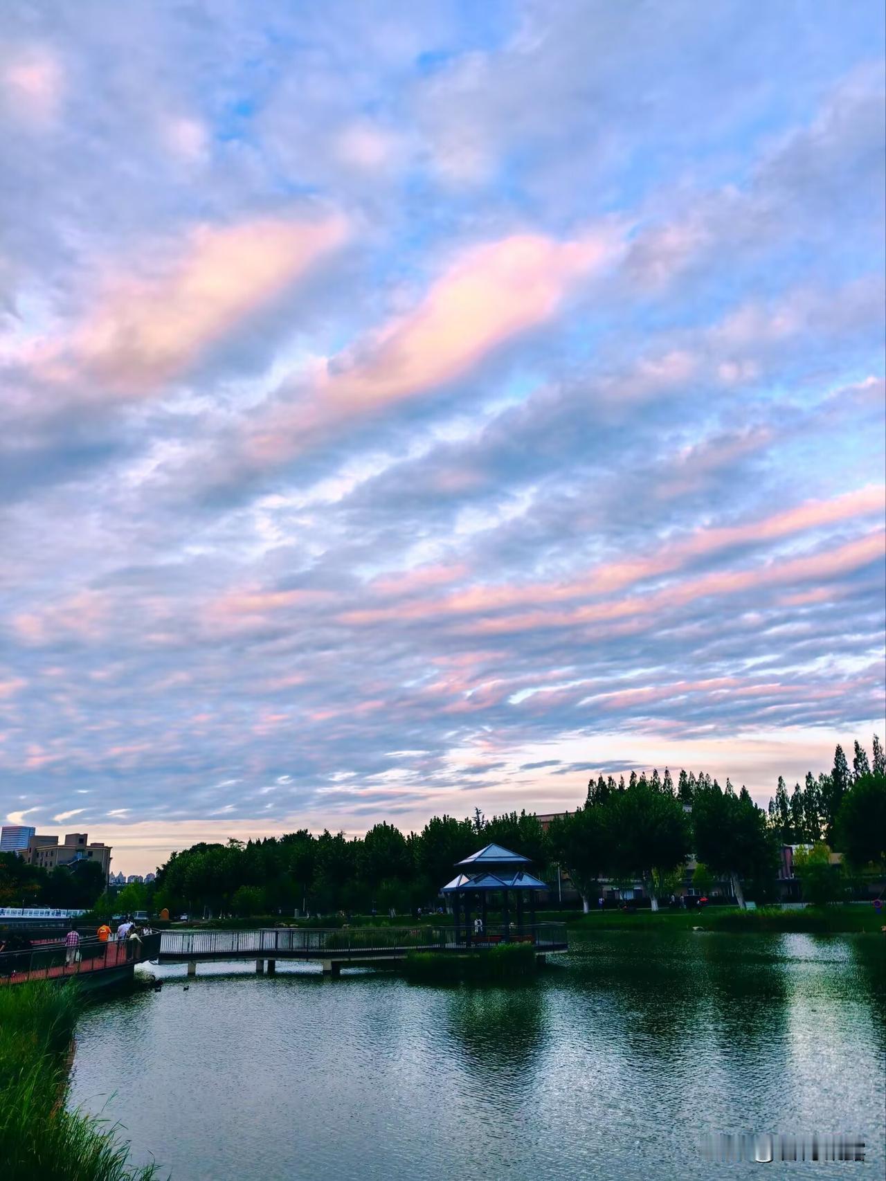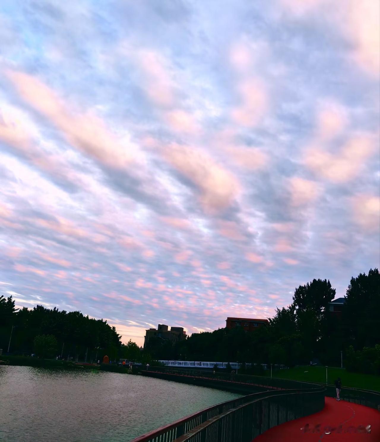 傍晚的天空,夕阳洒下金辉 , 为白云染上上了美丽的色彩, 仰望天空,令人美不胜收!