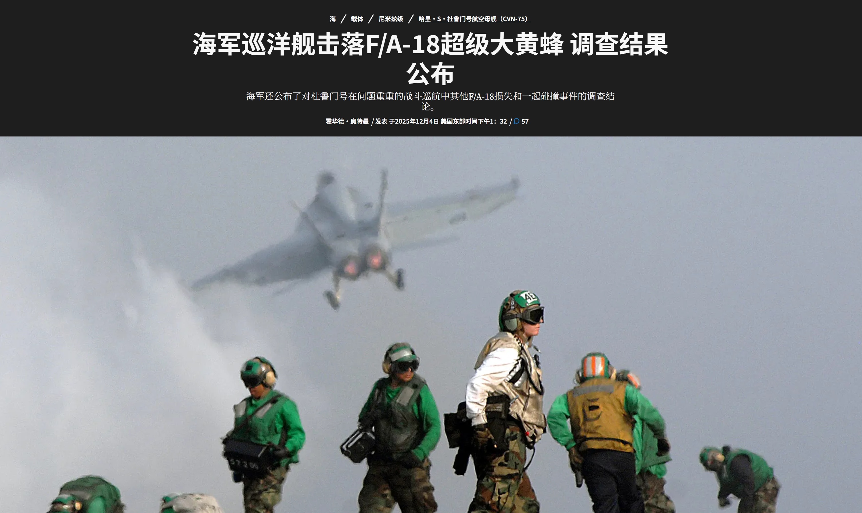 美海军公布其巡洋舰误击舰载机等事故结果——杜鲁门号航母打击群训练不足、维护不善、缺乏协同配合,无法适应高强度作战节奏……TWZ报道,当时时间12月4号,美国海军公布了杜鲁门号(CVN-75)航母打击群在部署中发生的一系列事故的调查结果摘要,包括葛底斯堡号巡洋舰(CG-54)误击F/A-18F、与商船相撞、F/A-18E从机库坠海,以及F/A-18E着舰失败坠海等,以上3架坠海舰载机均未被回收,仍在红海海底。1、葛底斯堡号误击事件:葛底斯堡号巡洋舰与航母打击群之间缺乏联合训练机会、巡洋舰缺乏有力支援,以及整个航母打击群缺乏协同配合,导致了葛底斯堡号对己方战机的误判和随后的攻击,以及险些误伤另一架战机。2、杜鲁门号与商船相撞事件:碰撞本可以避免,航母舰桥指挥团队未能安全绕过商船。本次碰撞也导致美国海军对当时舰长戴夫·斯诺登的指挥能力失去信心,随后将其解除职务。而碰撞至今,杜鲁门号受损部位仍未完全修复,只能等待其进行中期换料大修时进行维修。3、F/A-18E连同牵引车从机库滑落事件:当时杜鲁门号正在进行机动规避胡塞武装的导弹袭击,F/A-18E正在机库内被牵引车牵引移动。调查发现,虽然所有操作均符合标准作业程序,但调查认定主要原因是飞机刹车系统故障、加上航母舰桥、飞行甲板控制中心和机库控制中心之间沟通不足,导致了事故发生。调查报道同样表示,舰员的机智和随机应变能力避免了人员伤亡海外进一步的损失。➤这从侧面验证了,当时杜鲁门号的确险遭胡塞武装反舰导弹击中,后续美国和胡塞求和,并将航母打击群撤离红海。4、F/A-18E着舰失败坠海事件:调查结果显示,着舰失败的原因是杜鲁门号4号阻拦索失效,失效原因是右舷滑轮阻尼器故障。其他因素包括维护不善、人员配备不足、知识匮乏和训练不足,高强度的作战节奏和恶劣的战斗环境加剧了紧张局势。➤帝国海军航母打击群训练不足,协同作战能力不足,维护不善,无法适应高强度作战节奏和恶劣的战斗环境……,打胡塞打成这样,然后还在西太叫嚣。➤近期尼米兹号(CVN-68)在南海的坠机事故是否也是这个原因烽火问鼎计划热点观点