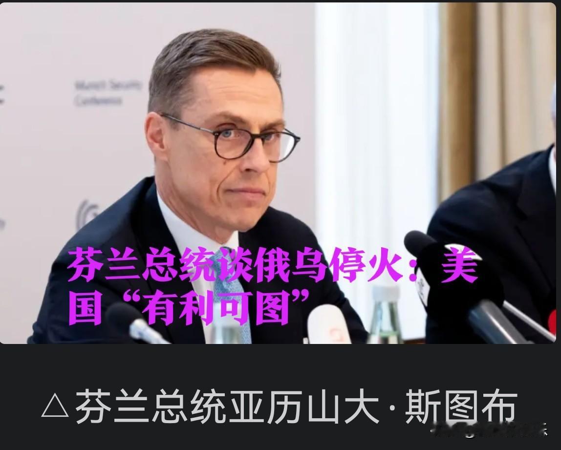 ‌芬兰总统谈俄乌停火:美国“有利可图”‌ 据外媒报道芬兰总统亚历山大·斯