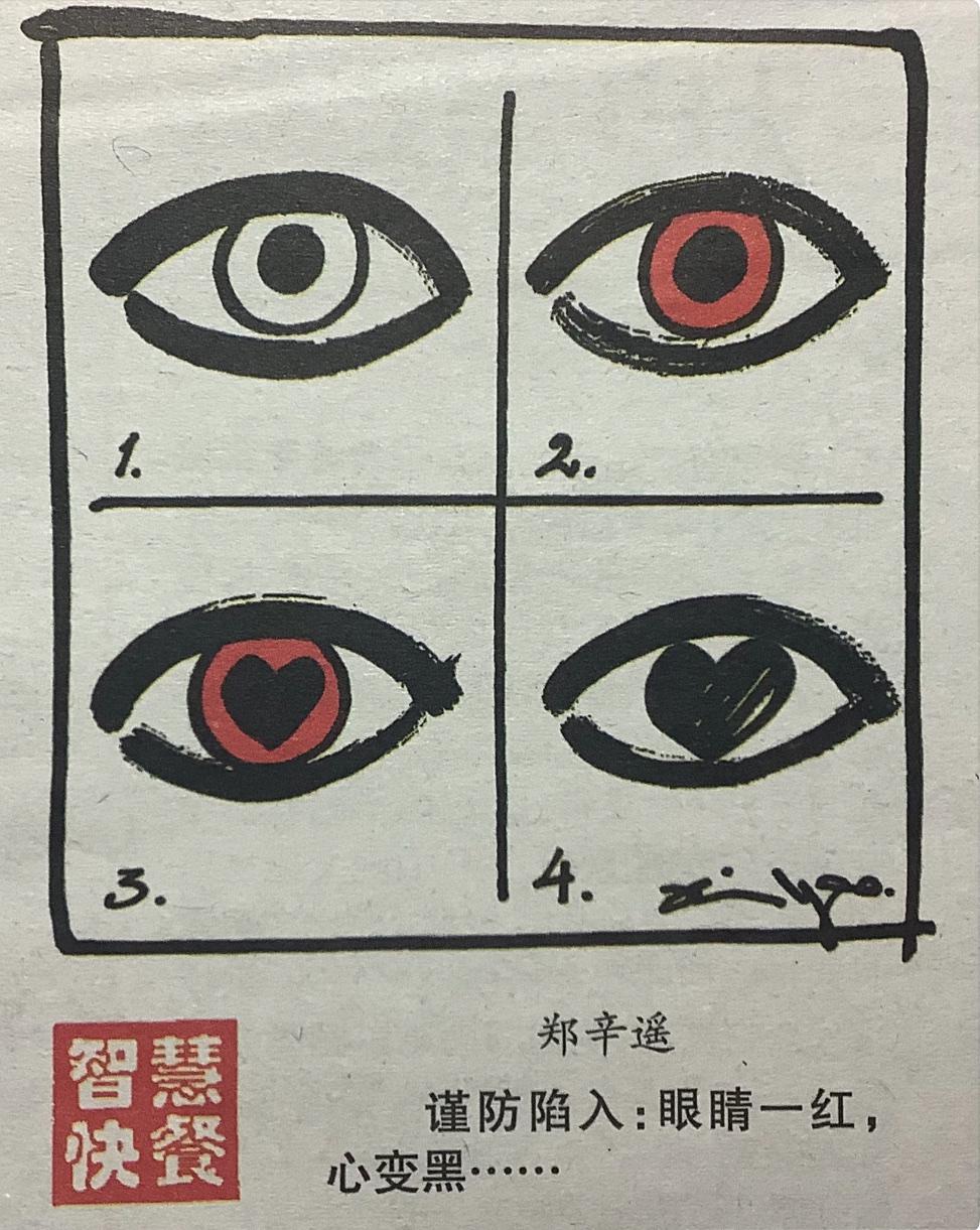 这张图片的智慧, 在于它提醒我们: “看人时若只凭第一眼的羡慕(眼睛一红),就容易在盲目追逐中,丢失了自己本心的明澈与温良(心变黑)。” 真正的清醒, 是学会在纷繁的世界里护住内心的 光—不因他人的拥有而暗淡, 不因一时的输赢而改色。 永远让灵魂走在目光前面, 用从容的脚步,走正直的路。 愿我们都能: 眼中有世间万象,心中有明镜一方。