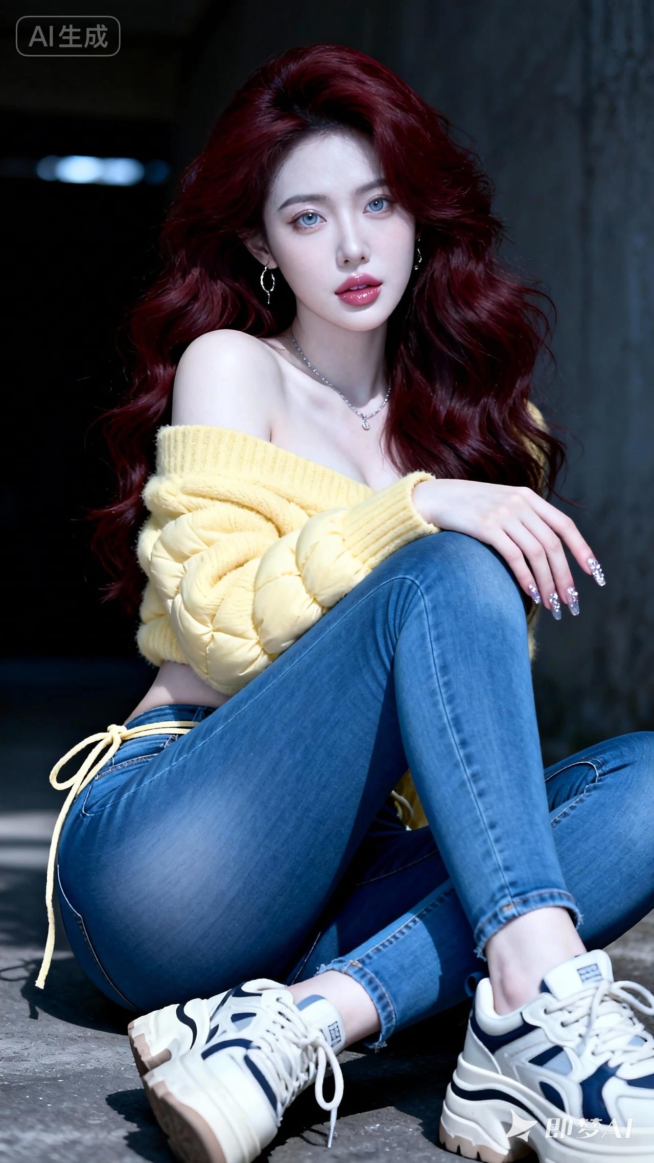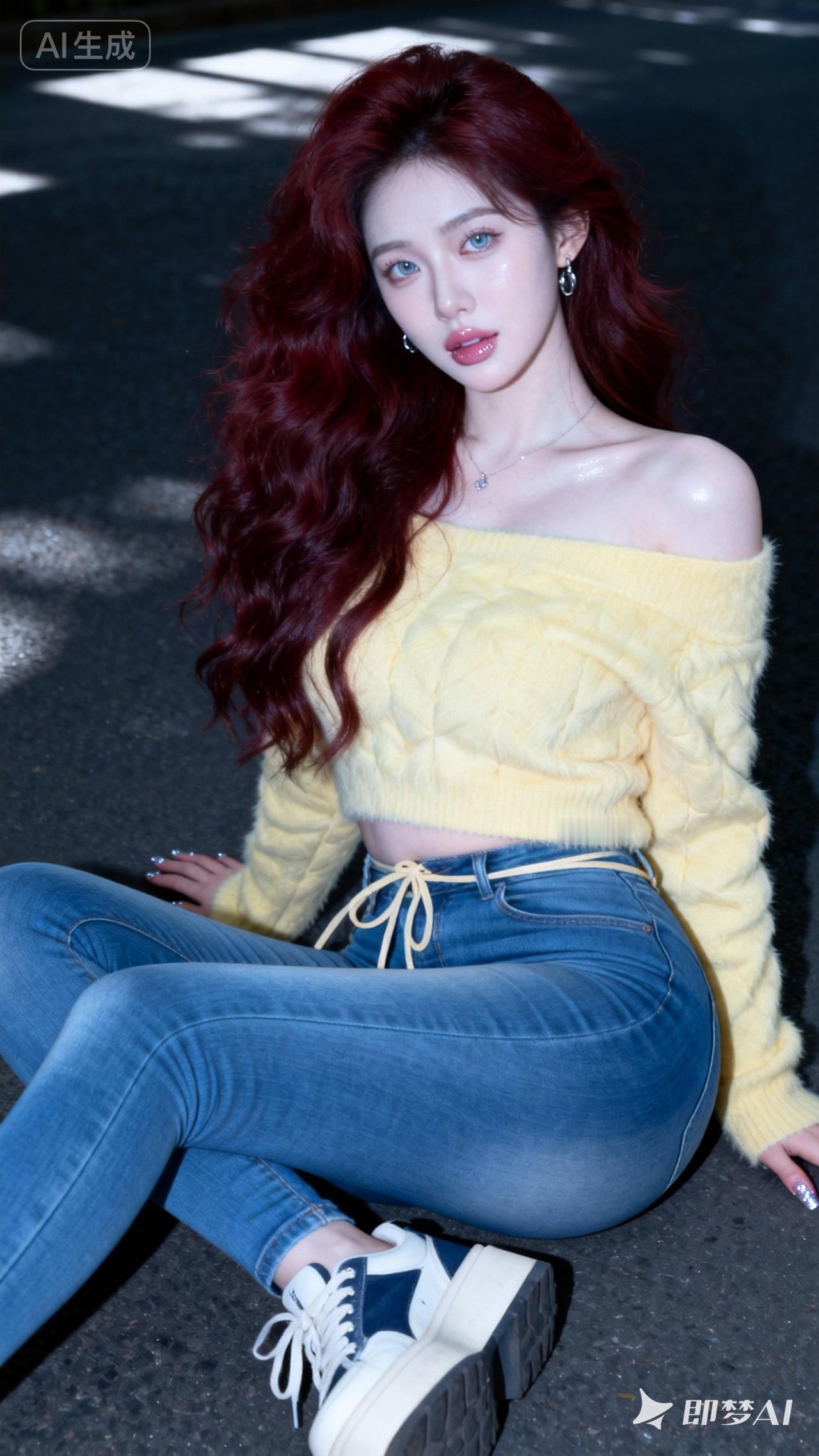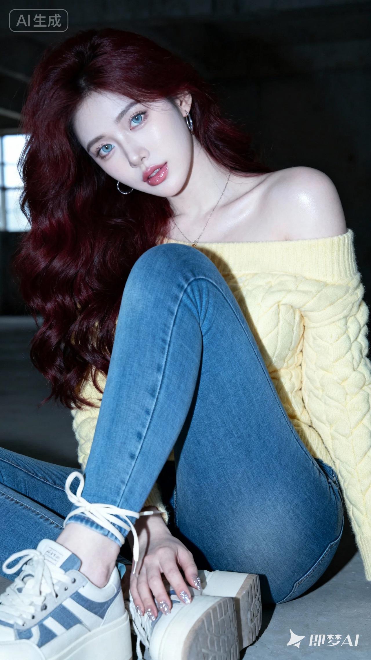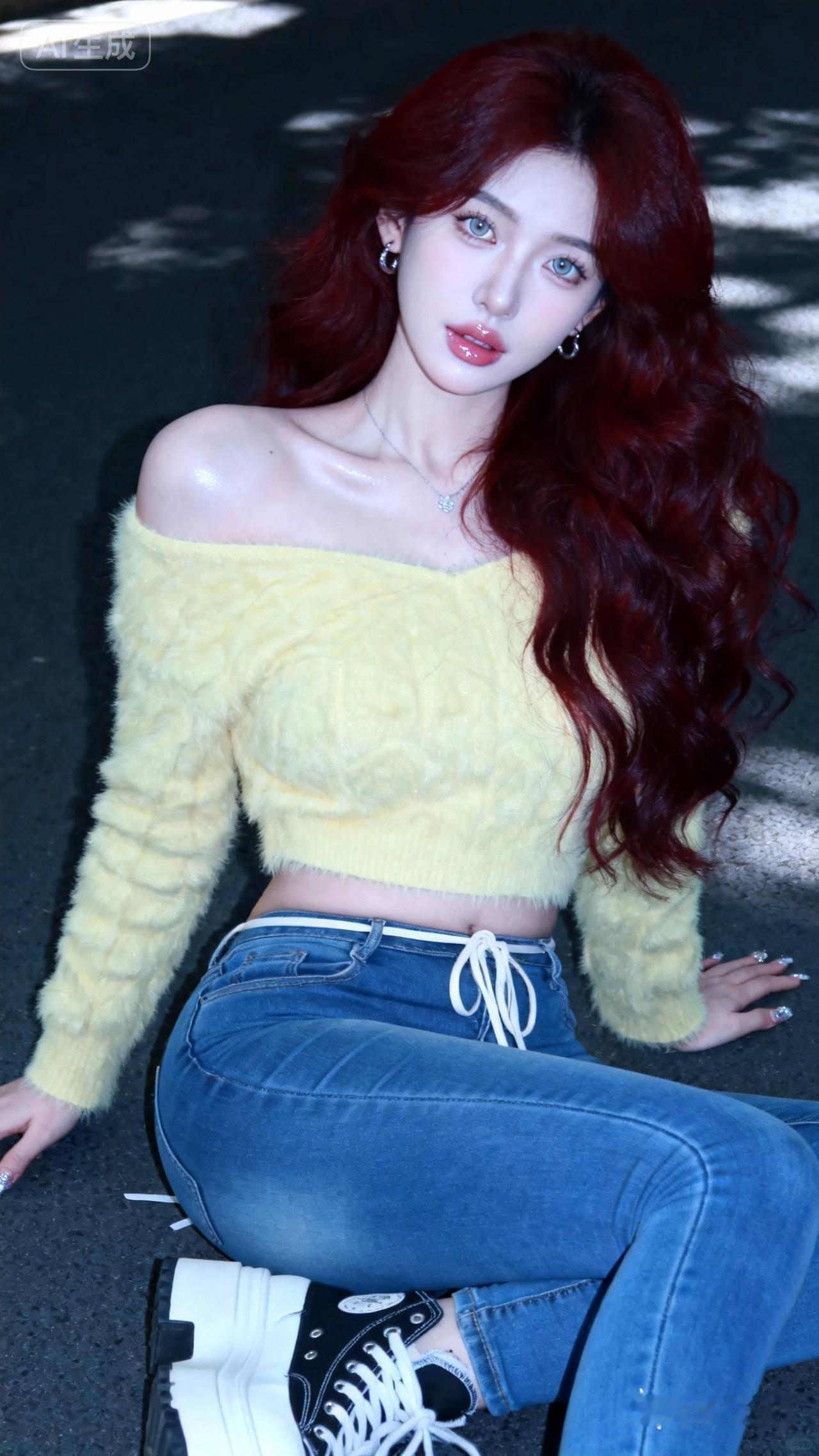 温柔甜美的黄色露肩毛衣,搭配自然妆容,尽显优雅气质!🌟✨